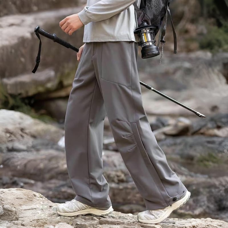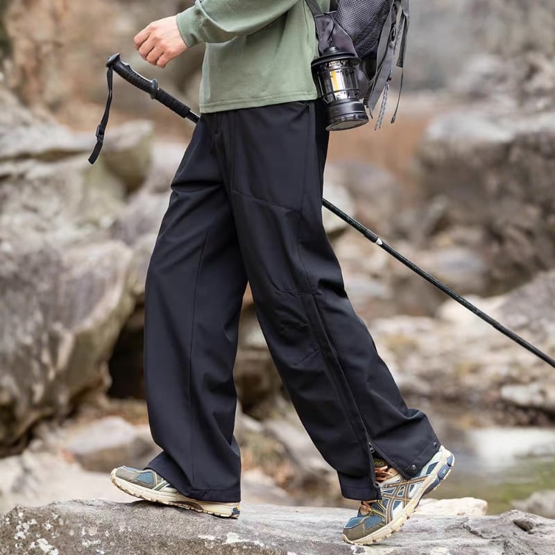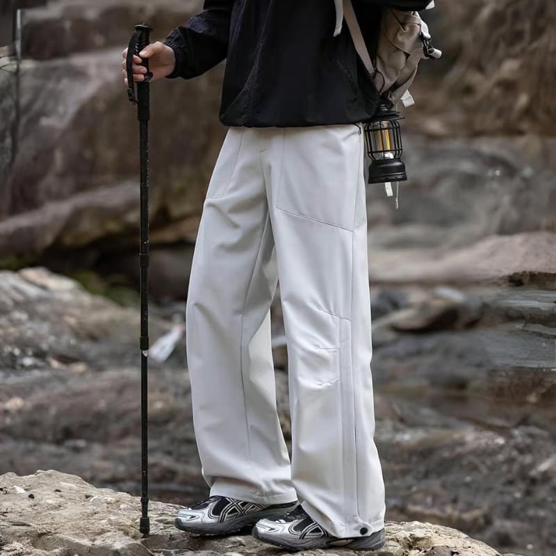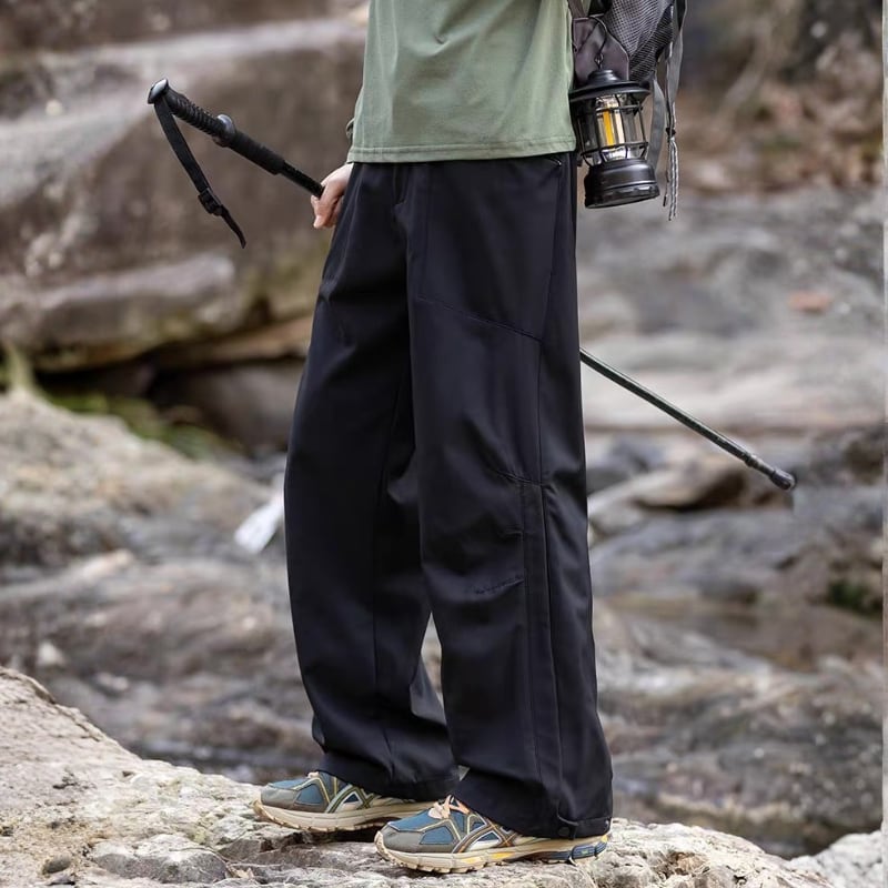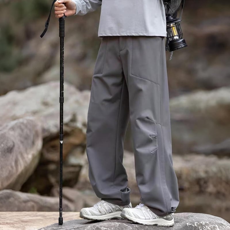 動きやすさを意識したワイドシルエットに、切替デザインを入れたアウトドアパンツ。