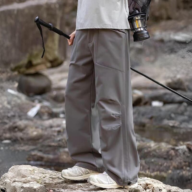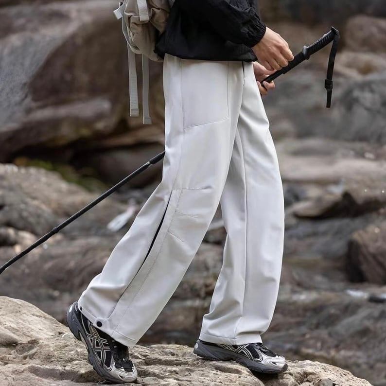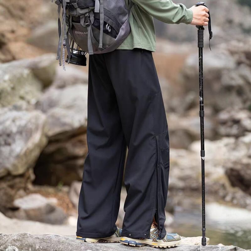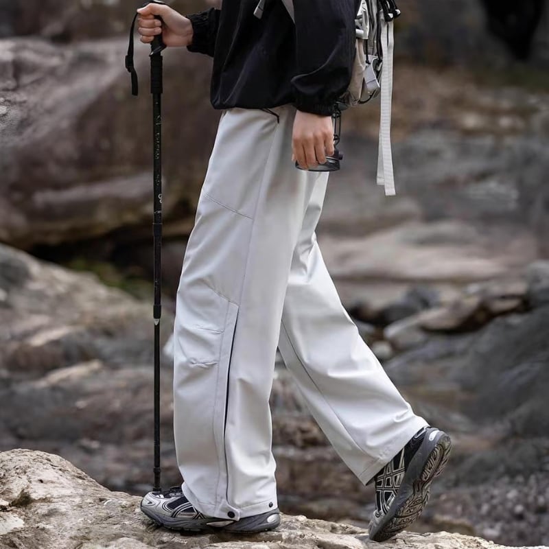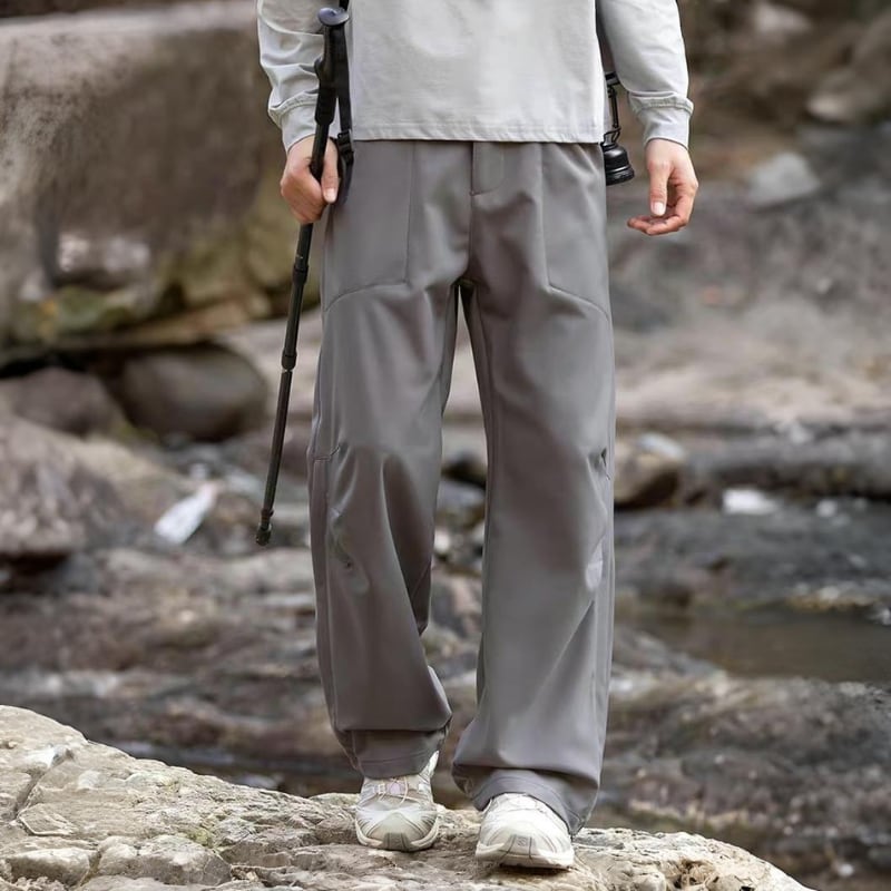 動きやすさを意識したワイドシルエットに、切替デザインを入れたアウトドアパンツ。