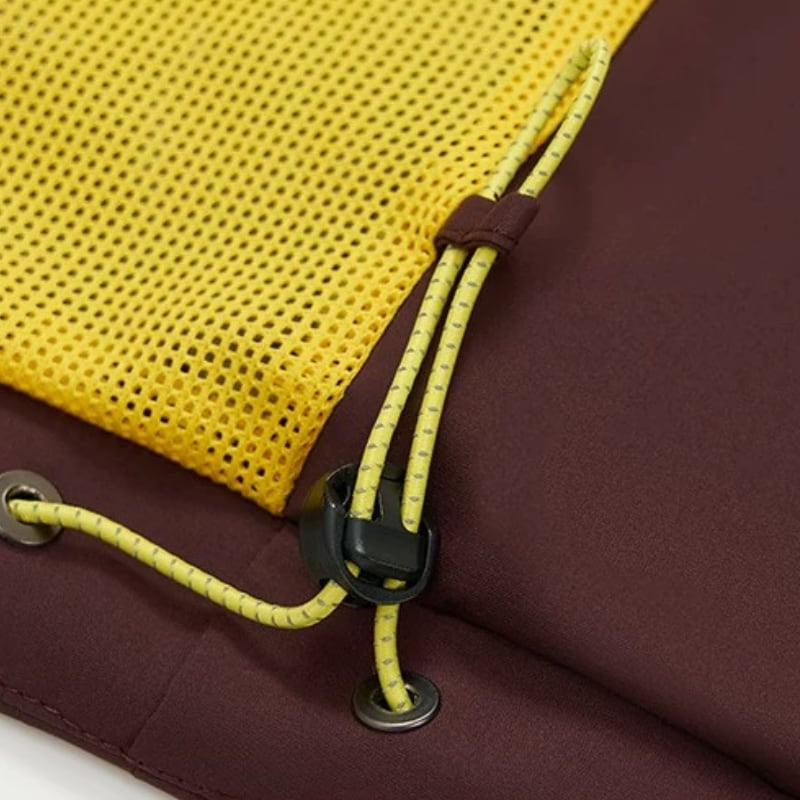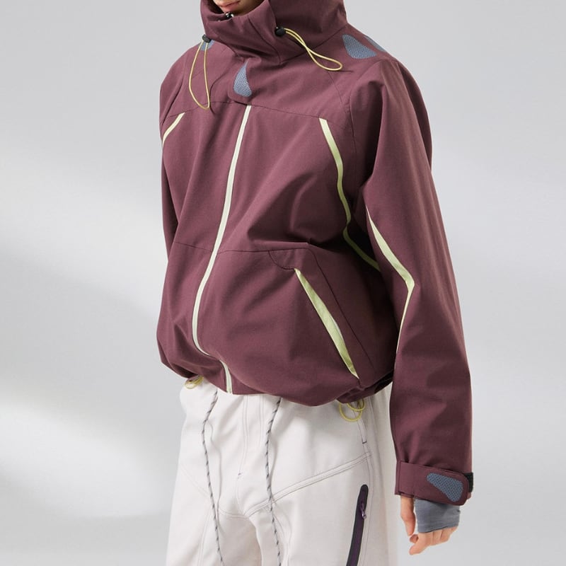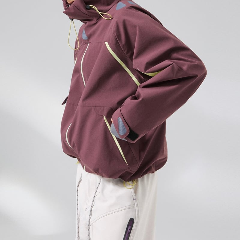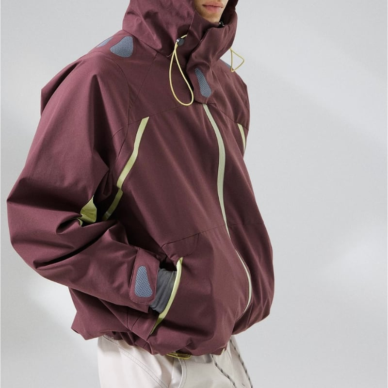 止水風ジップとドローコード仕様で、アウトドアらしいディテールに仕上げています。