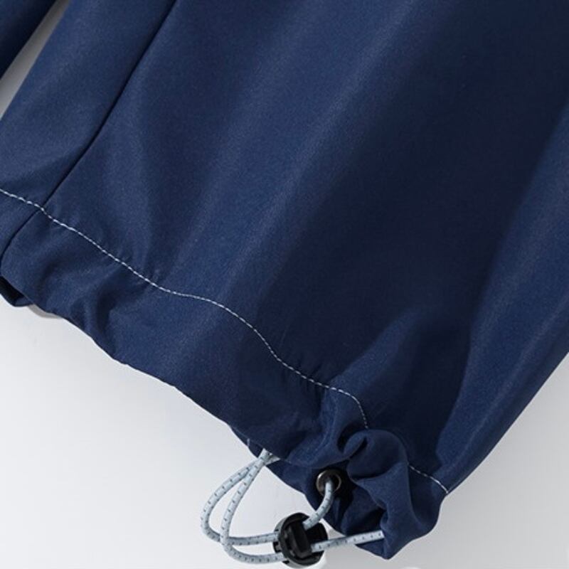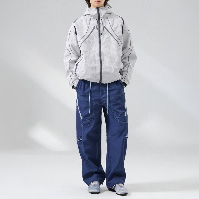 止水風ジップポケットとドローコード仕様でシルエット調整ができ、動きやすさも意識したデザインです。