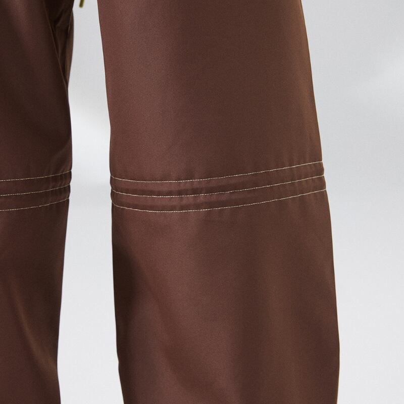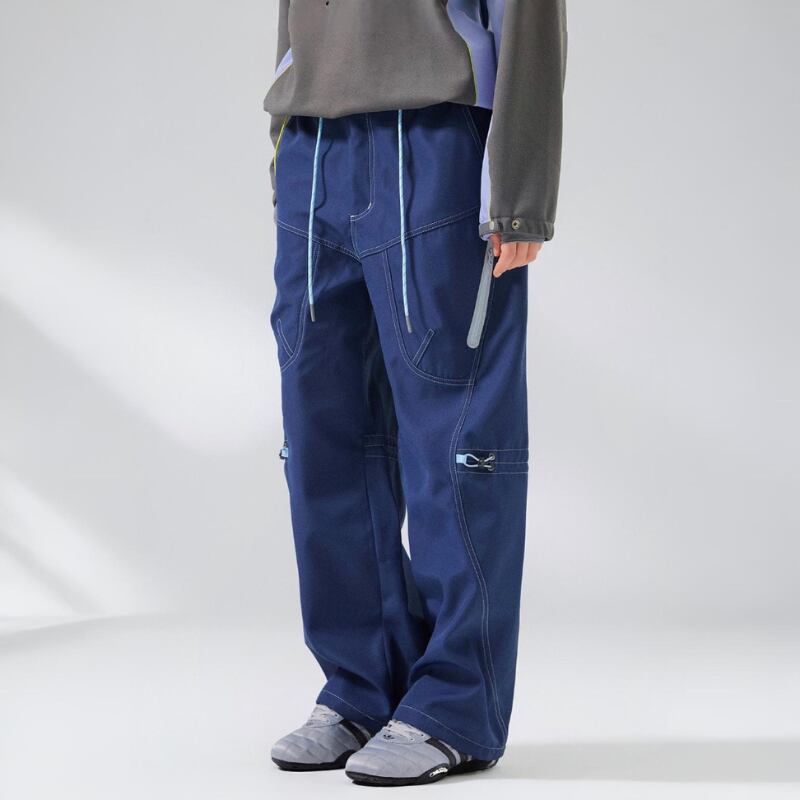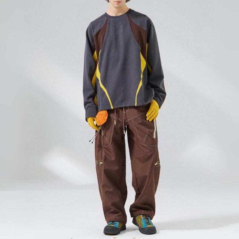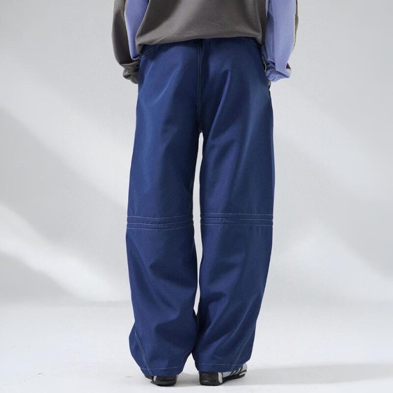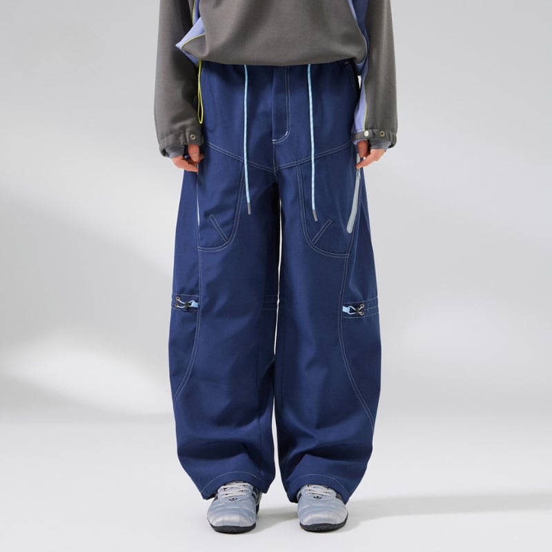 ゆとりのあるワイドシルエットに、カーブライン切替を入れたパンツ。