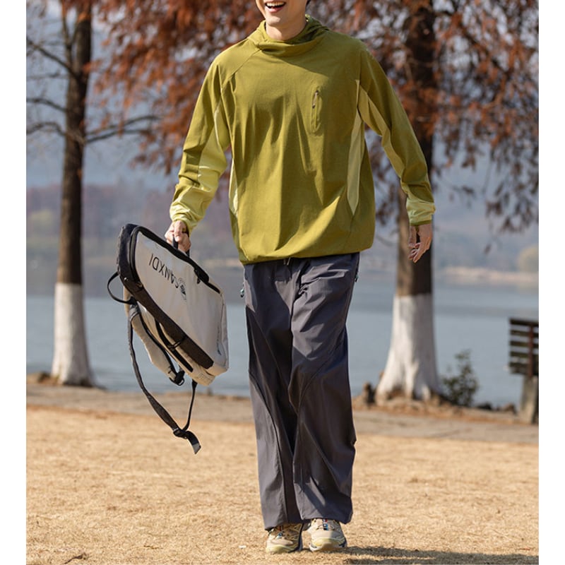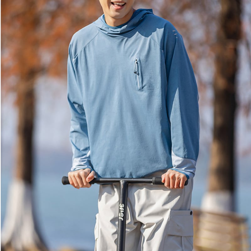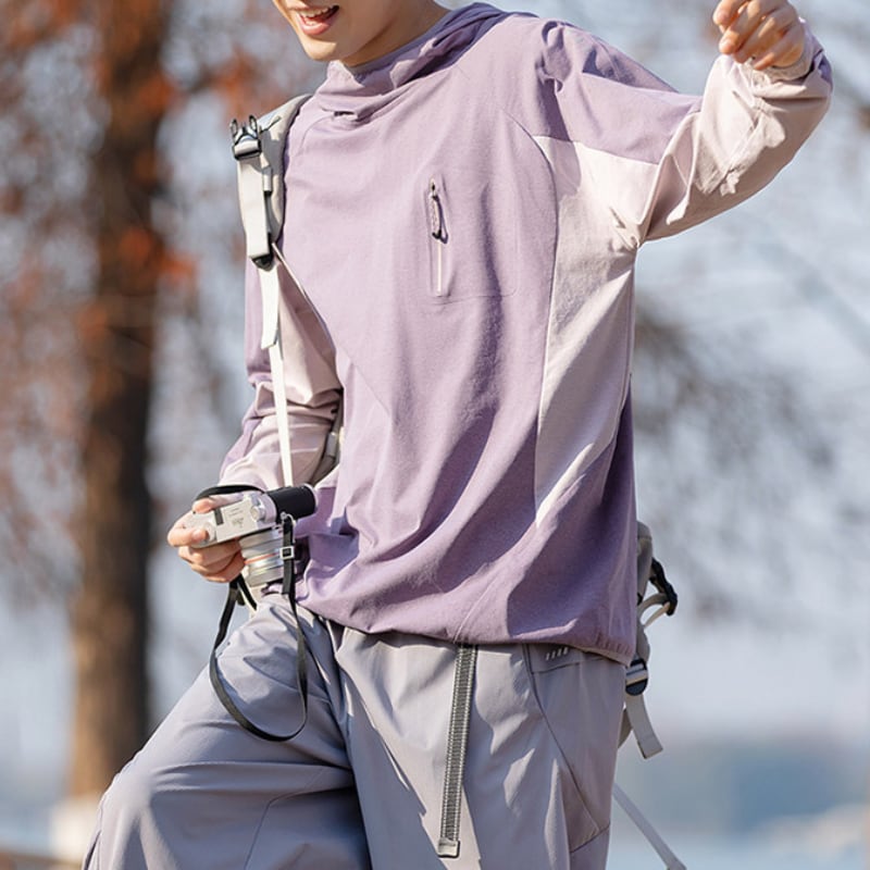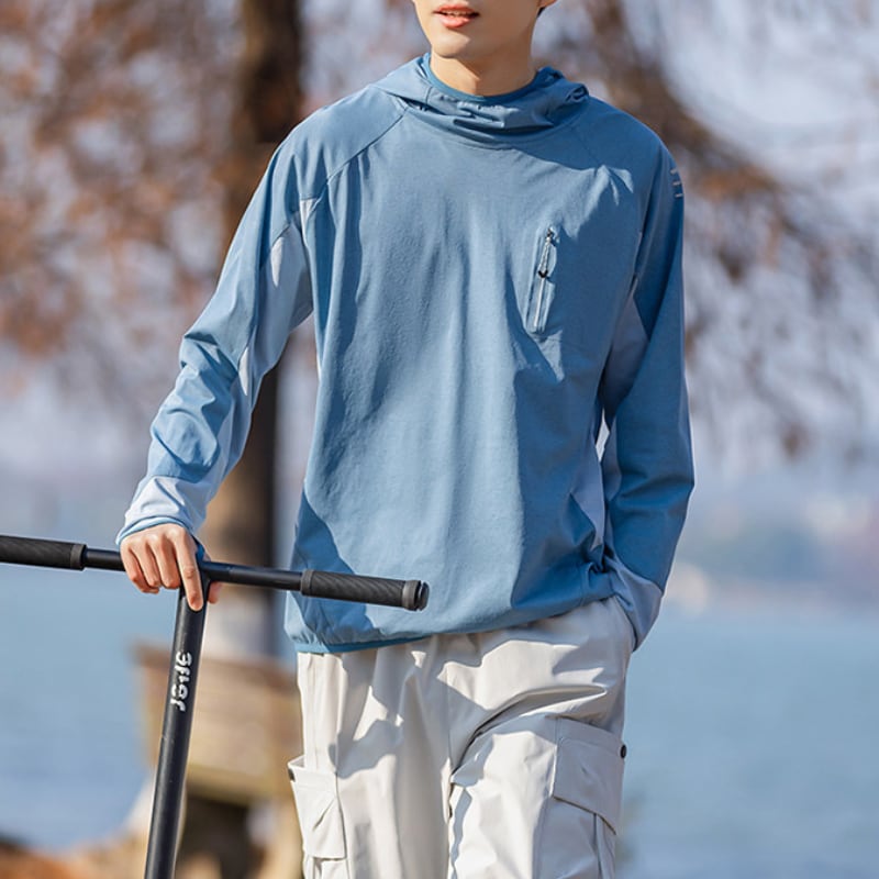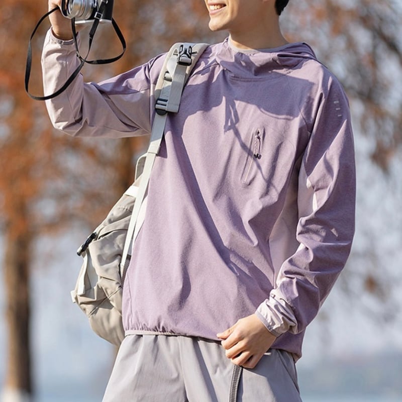 軽やかな着心地で動きやすいフードプルオーバー。