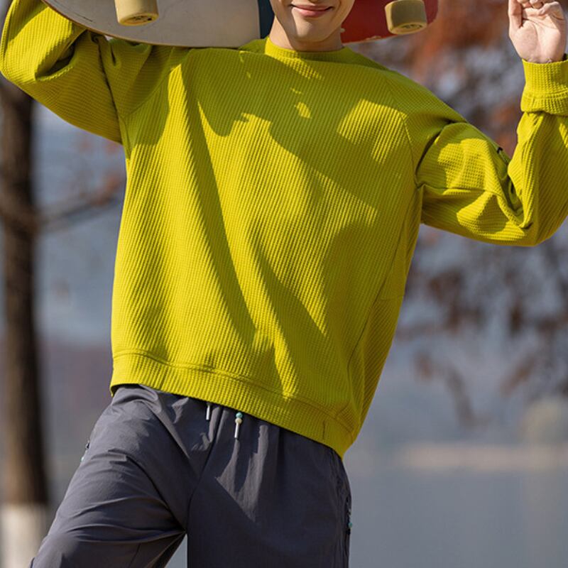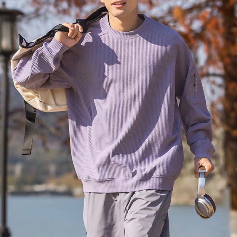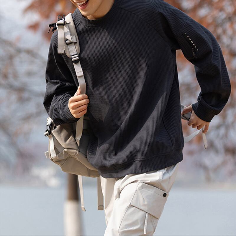 凹凸のあるワッフル生地を使用した、軽やかな着心地のプルオーバー。