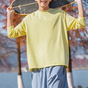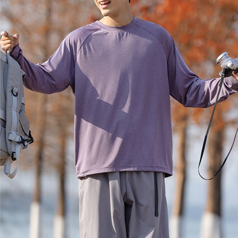 ラグランスリーブで動きやすく仕上げたロングスリーブTシャツ。