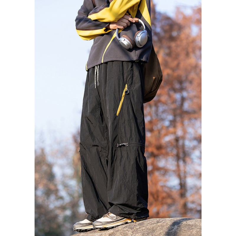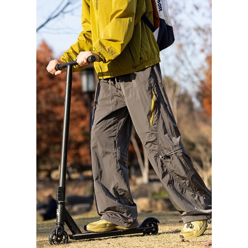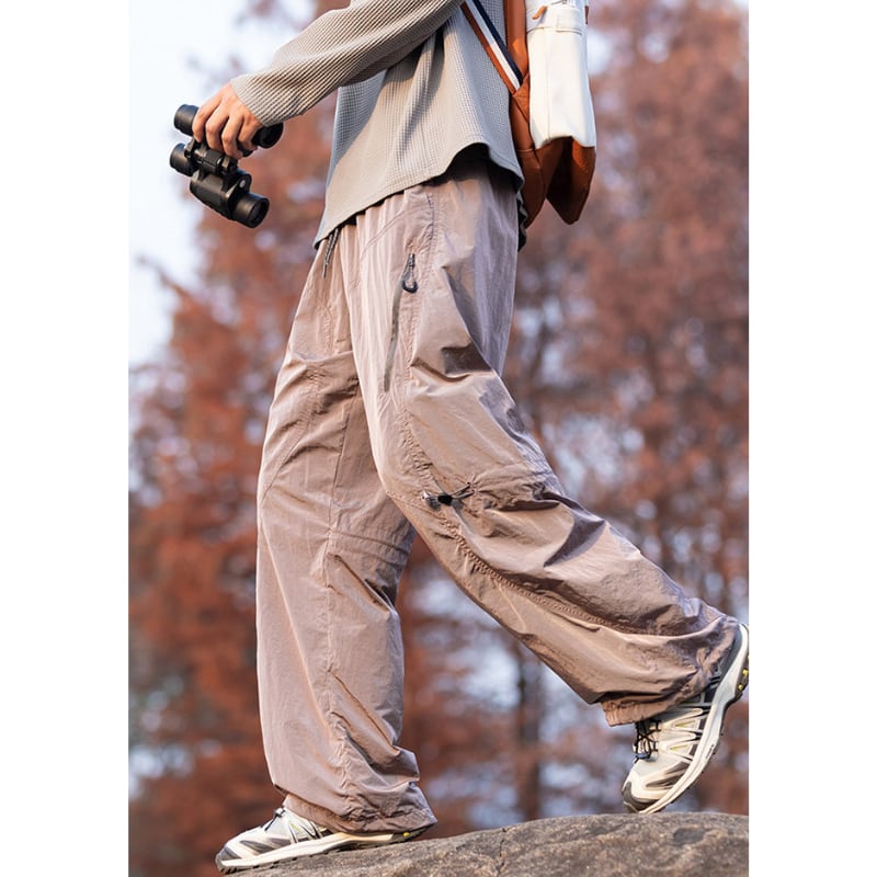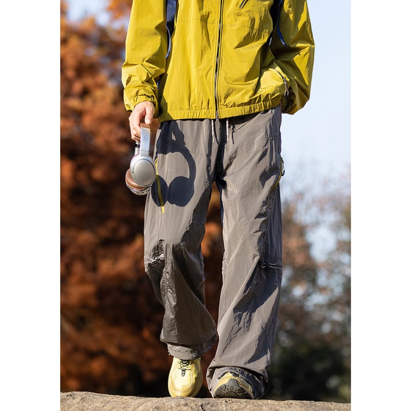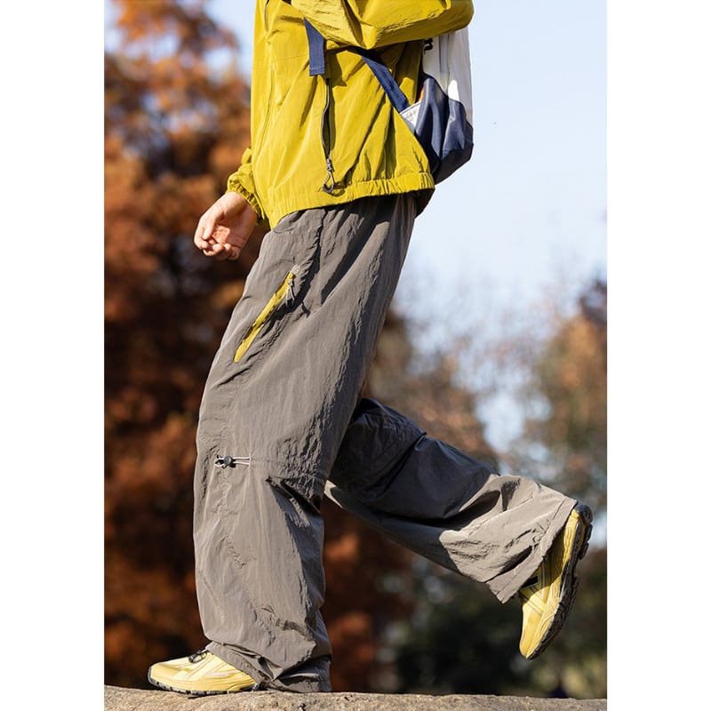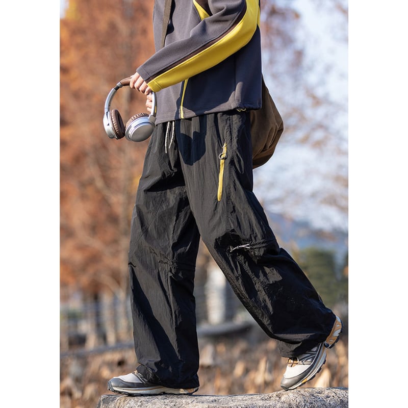 サイドジップポケットや膝のドローコード、裾コード付きでシルエットの調整ができるデザインです。