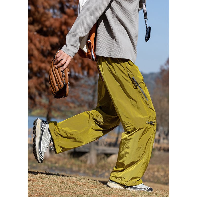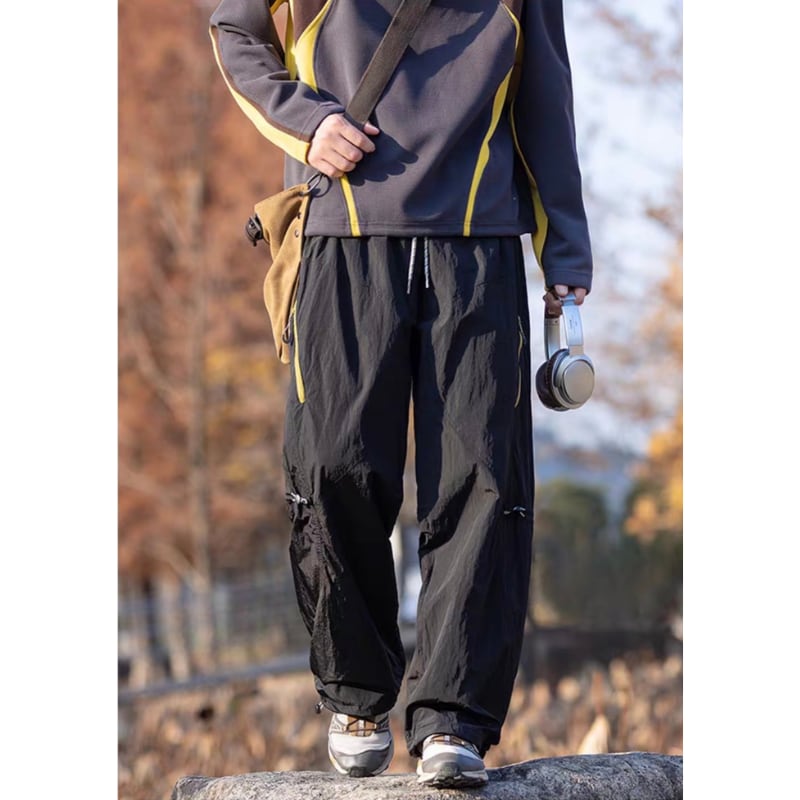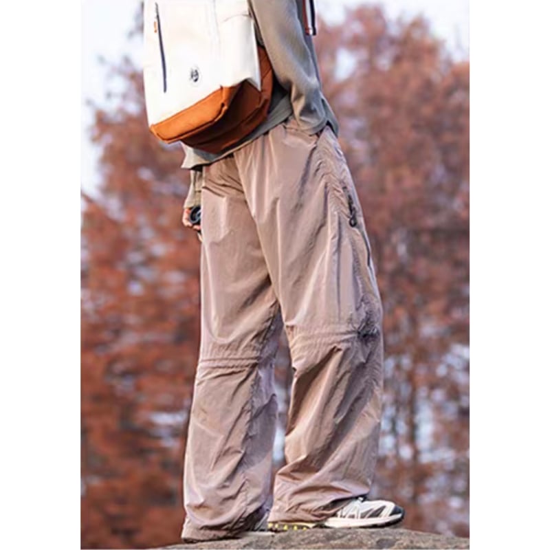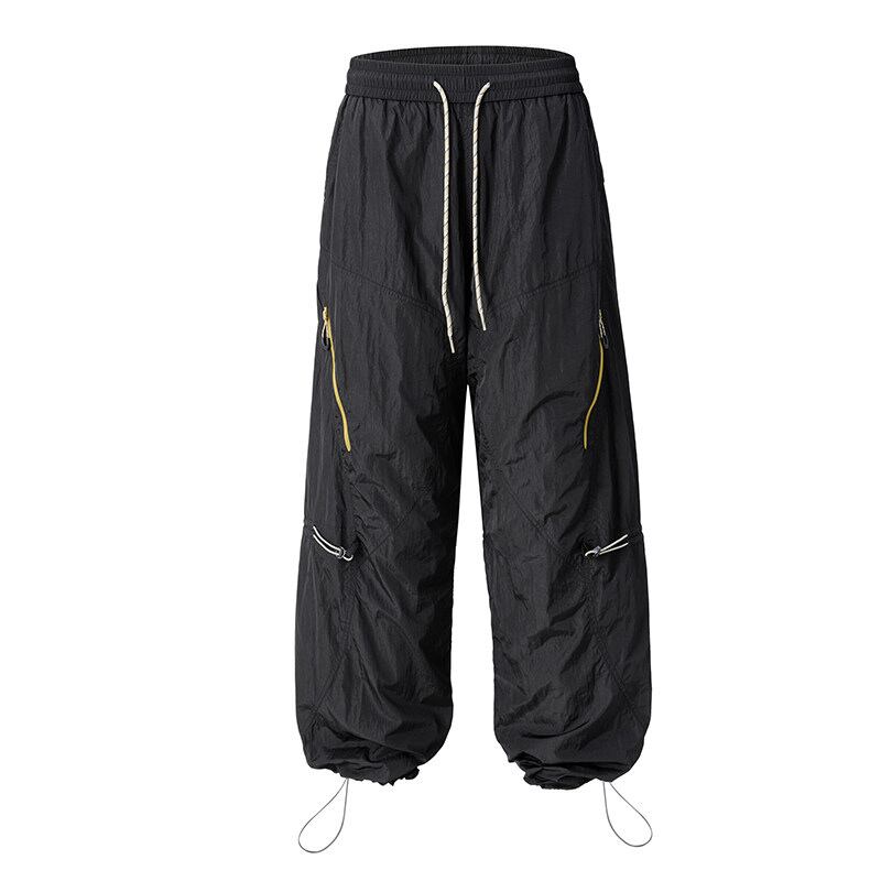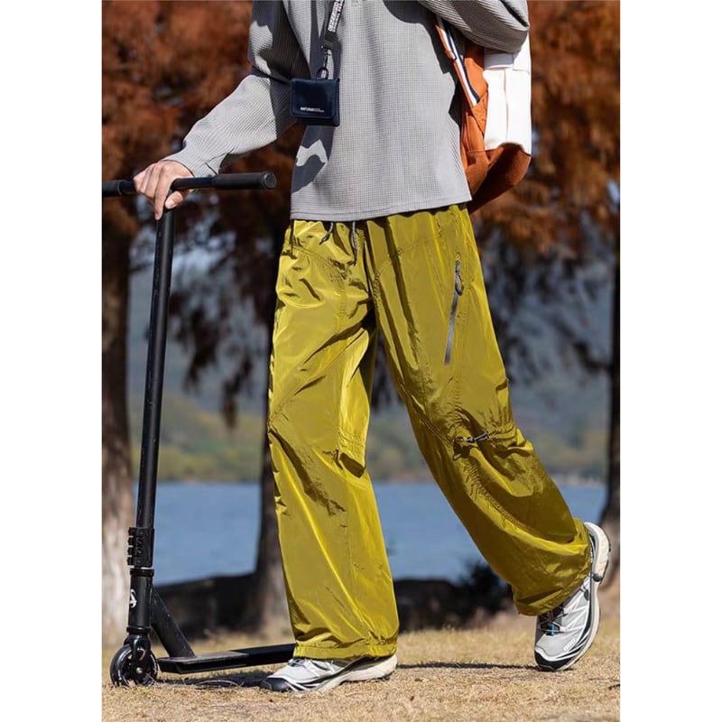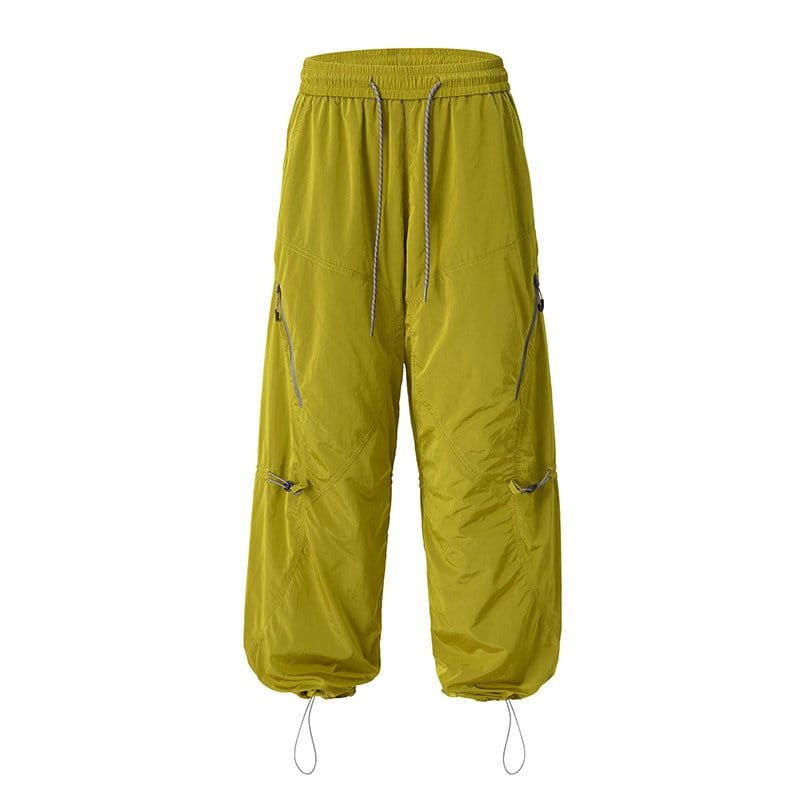 サイドジップポケットや膝のドローコード、裾コード付きでシルエットの調整ができるデザインです。