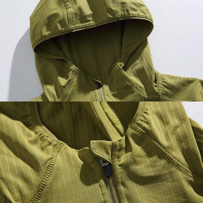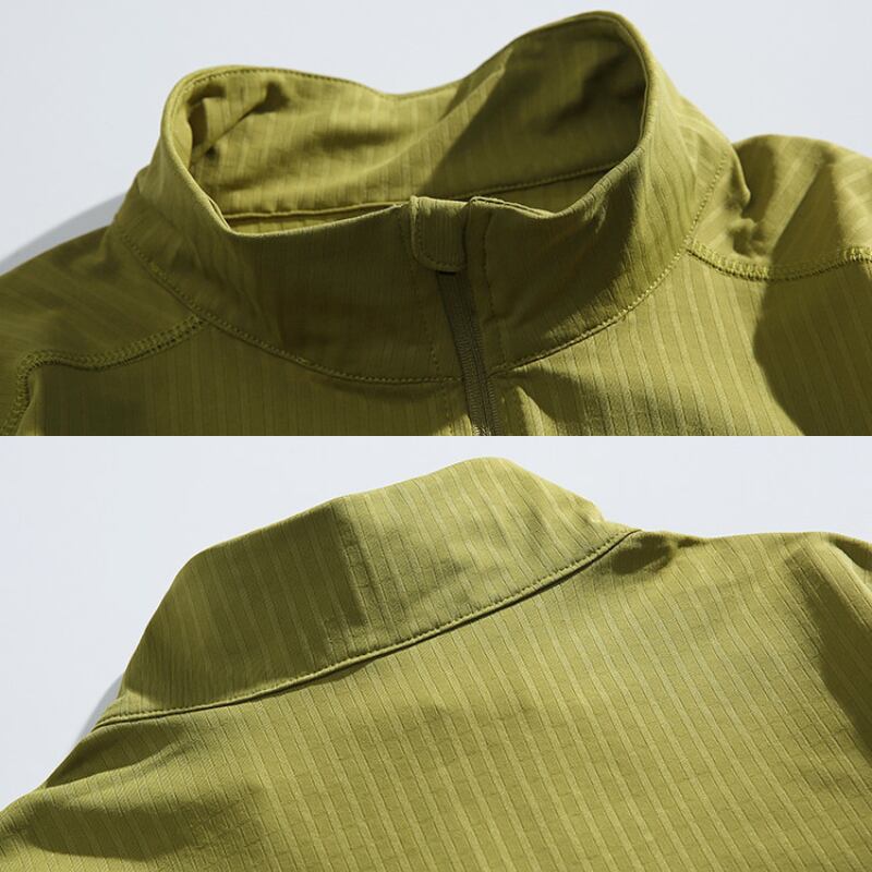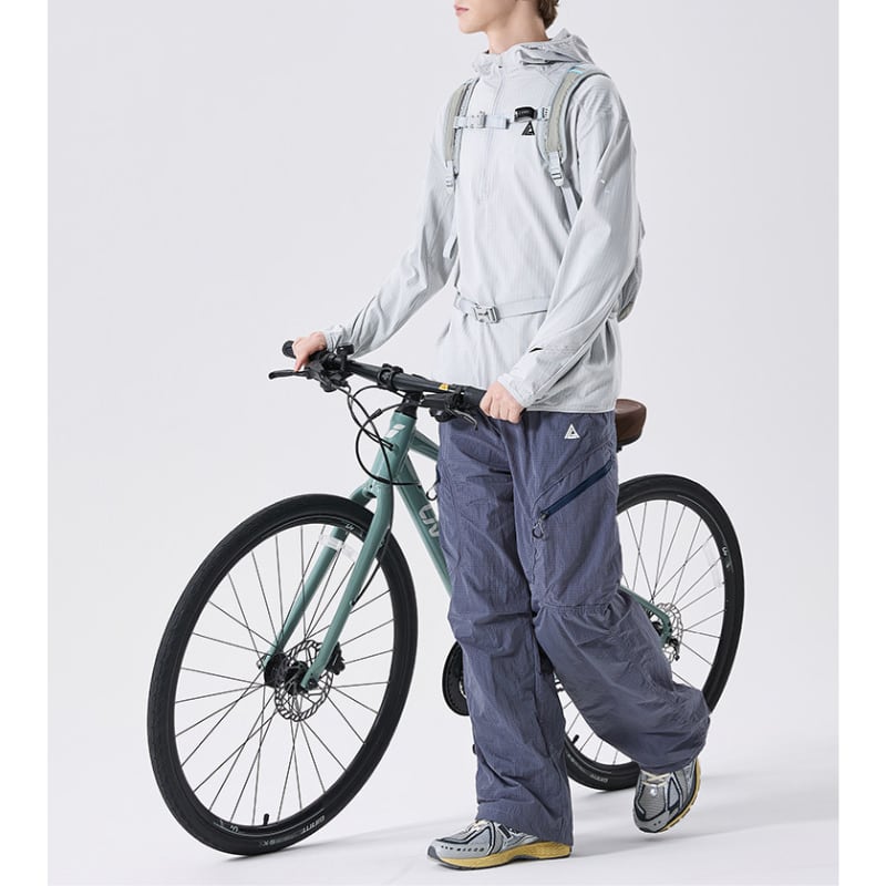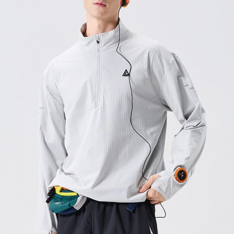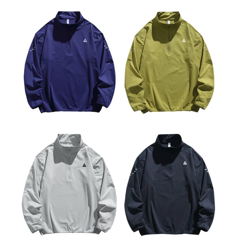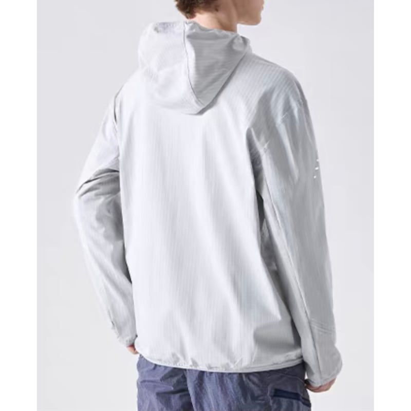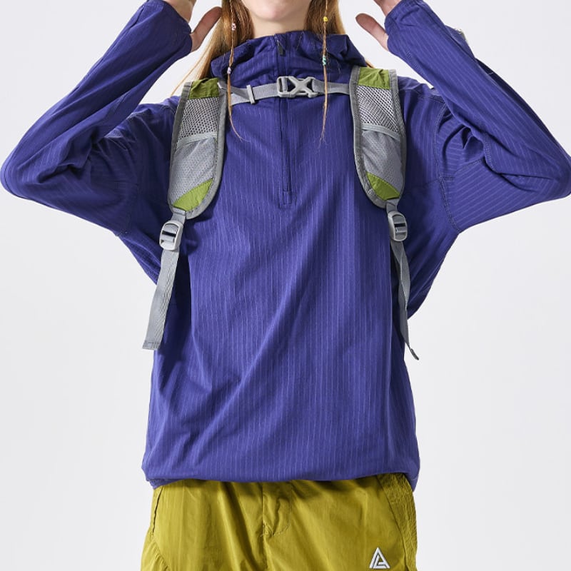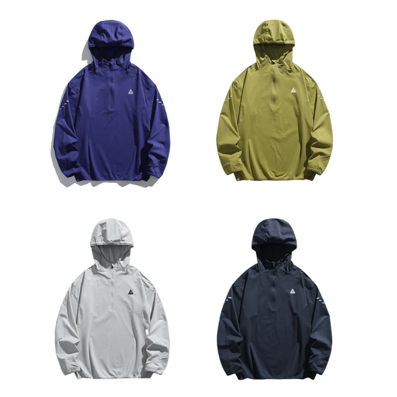 縦ライン入りのリップストップ生地を使用したプルオーバー。