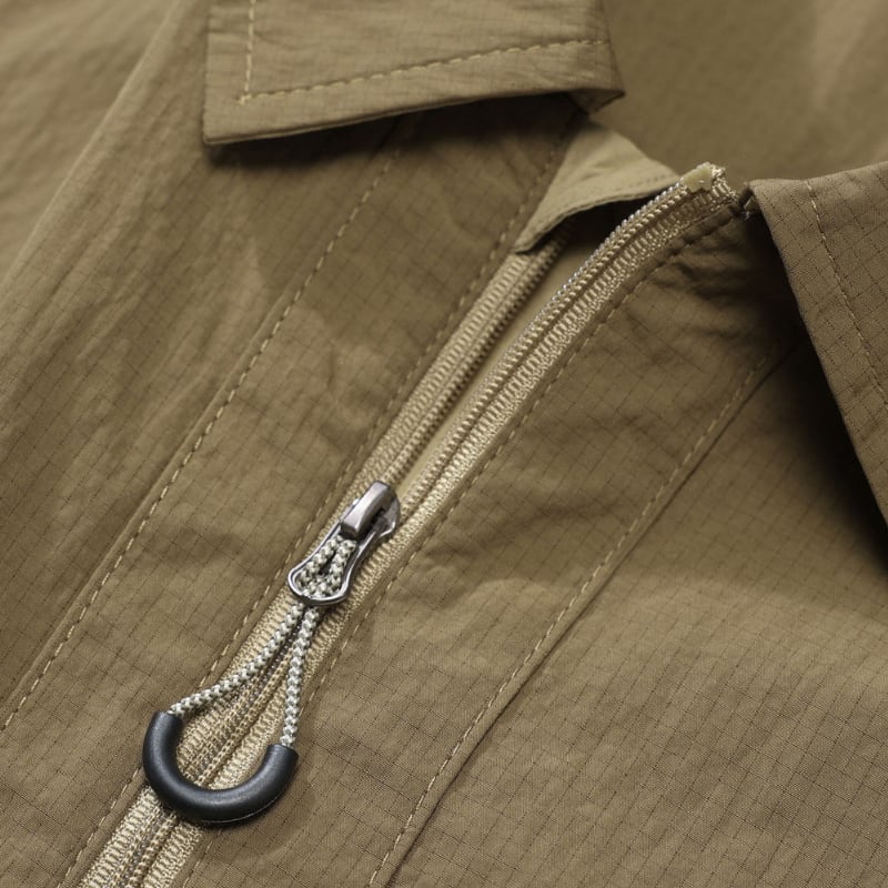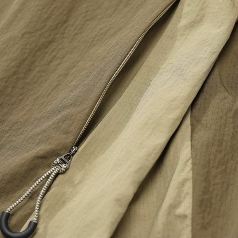 裾と袖口はゴム仕様でバランスを整え、スタイリングの主役になる一枚です。