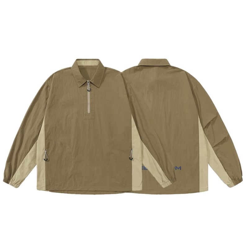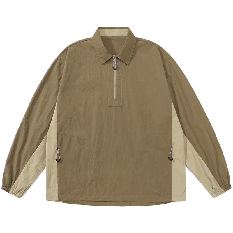 フロントジップと配色切替が映えるハーフジッププルオーバー。