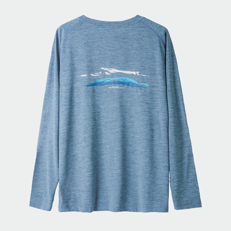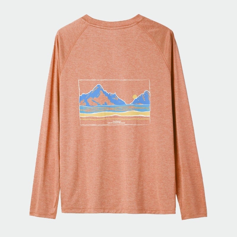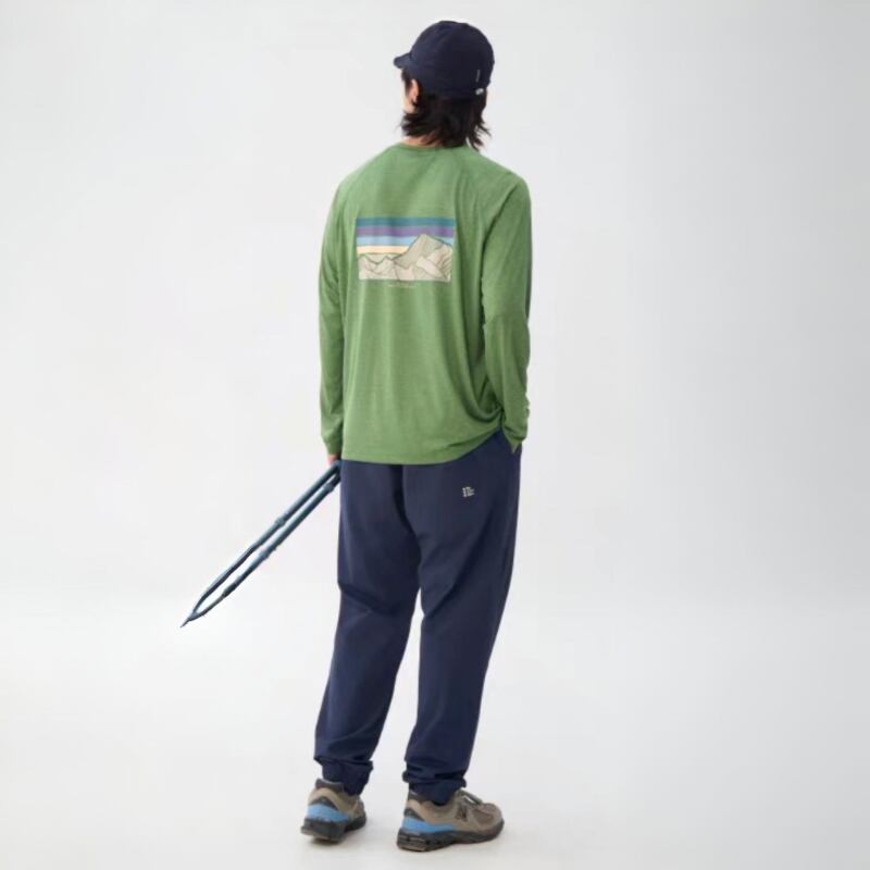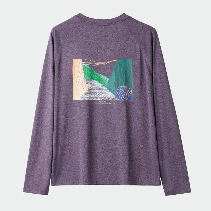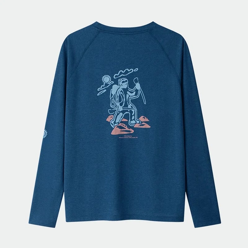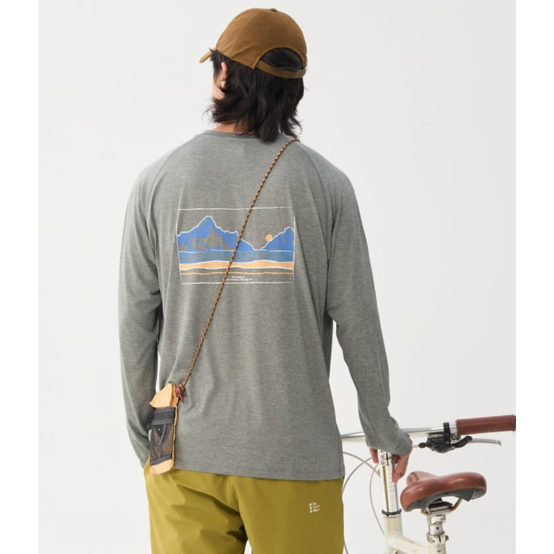 アウトドアモチーフのバックプリントが映えるラグランロングTシャツ。
