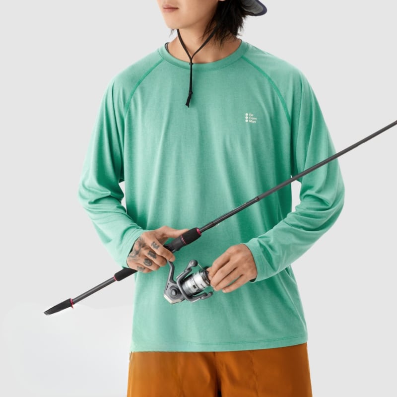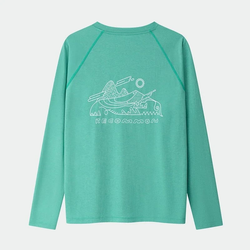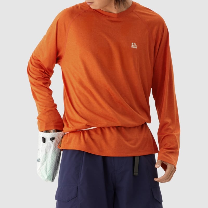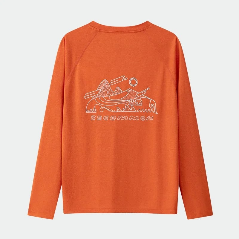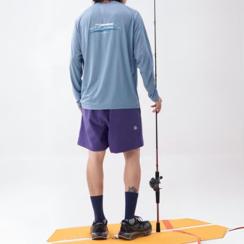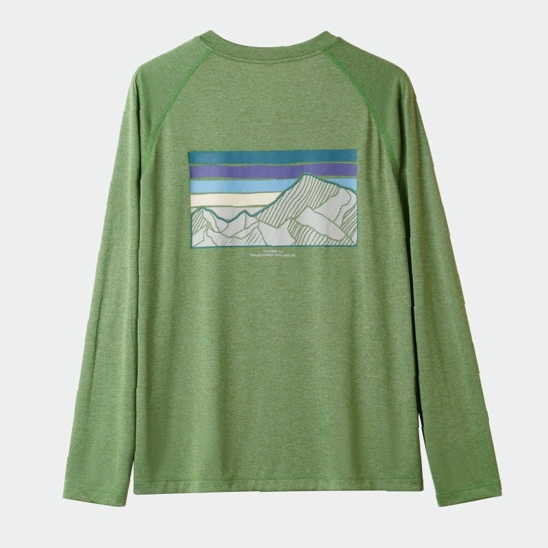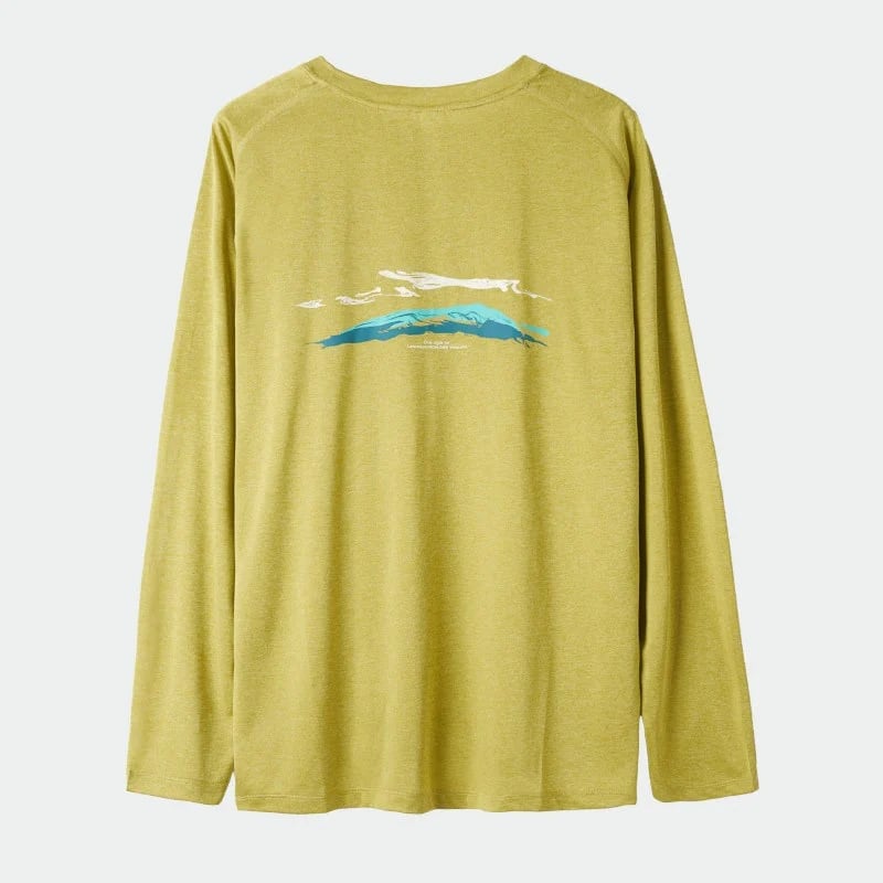 アウトドアモチーフのバックプリントが映えるラグランロングTシャツ。