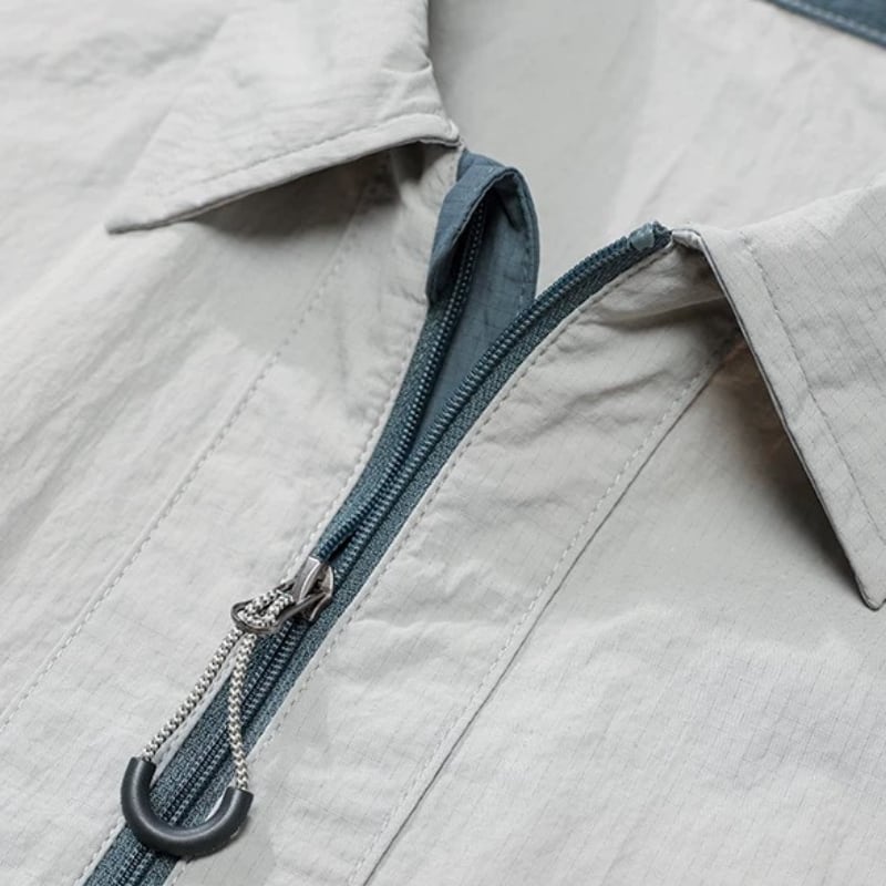 フロントはジップ仕様で着脱しやすく、裾と袖口はゴムで程よく丸みのあるシルエットに仕上げています。