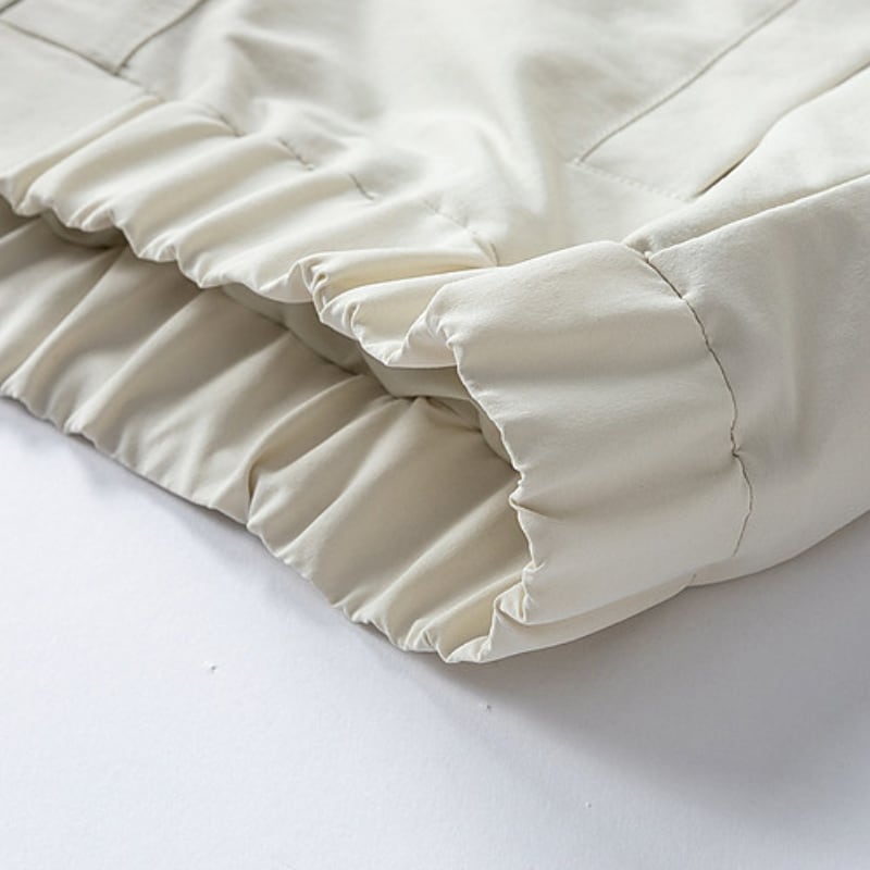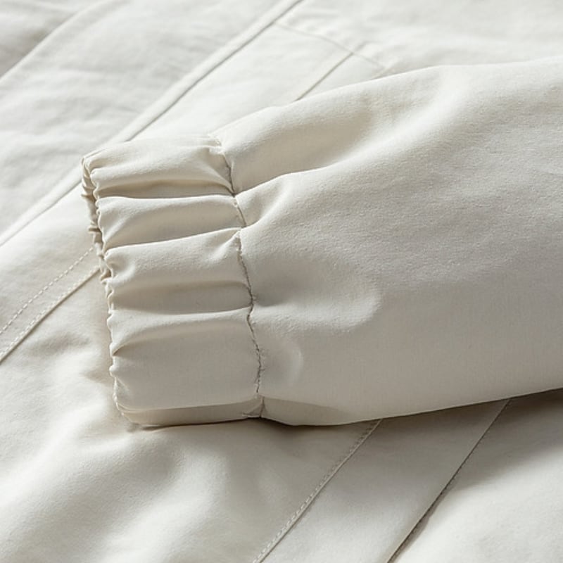 ゆとりのあるシルエットと裾・袖口のゴム仕様でラフに羽織りやすい一着です。