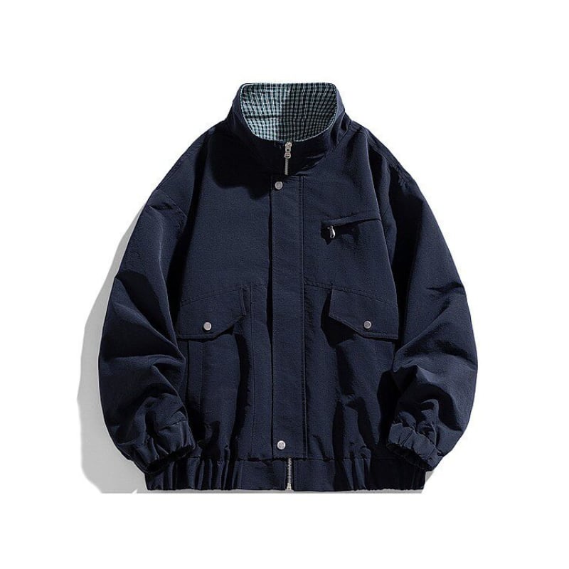 スタンドカラーがすっきりとした印象を与えるジャケット。