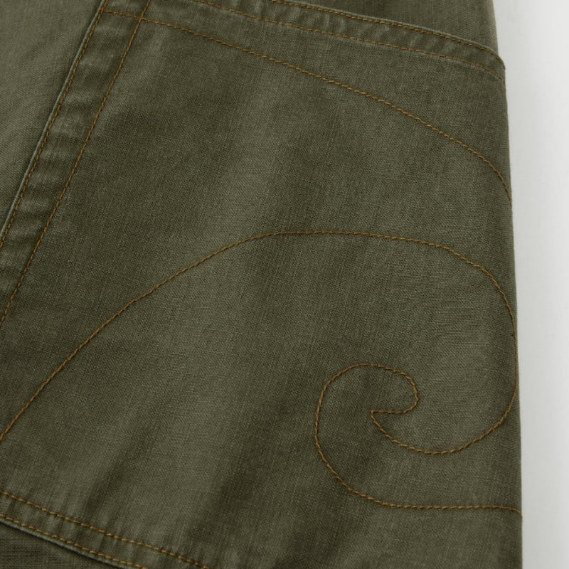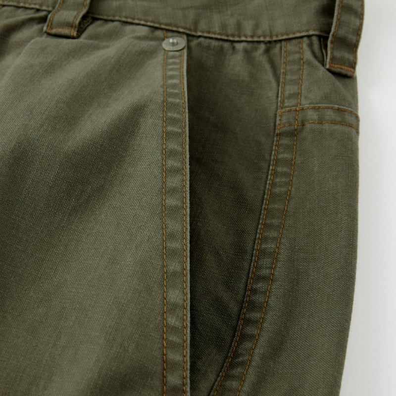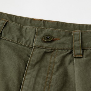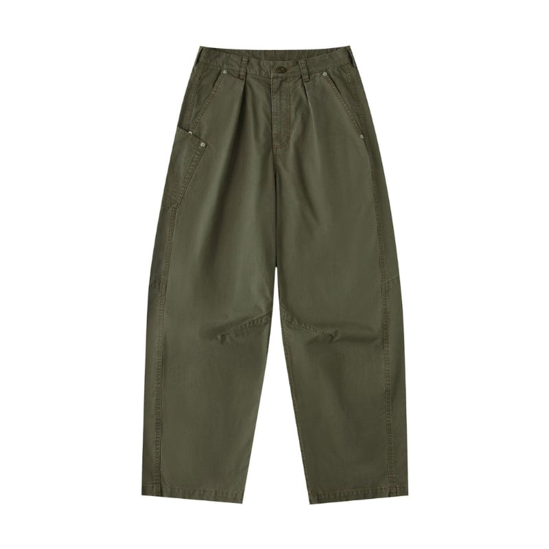 フロントタックと膝部分のパネル切替を取り入れたデザインで、立体感のあるシルエットが特徴。