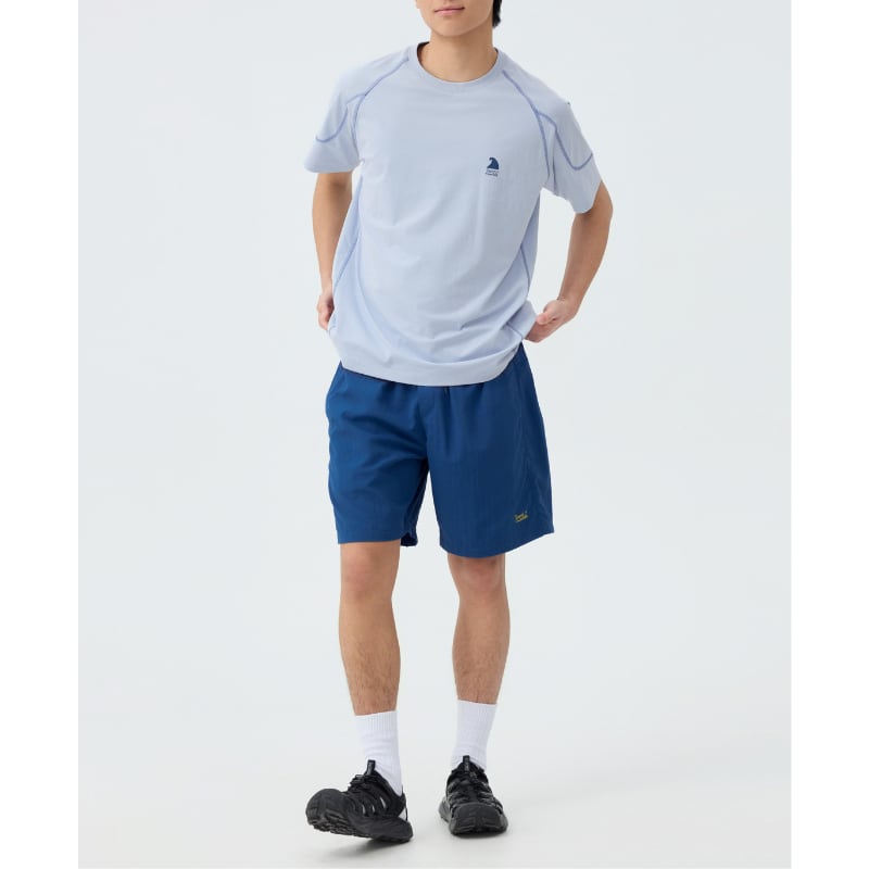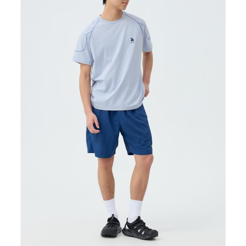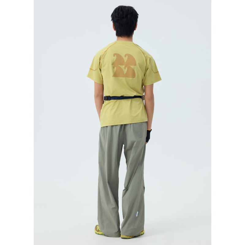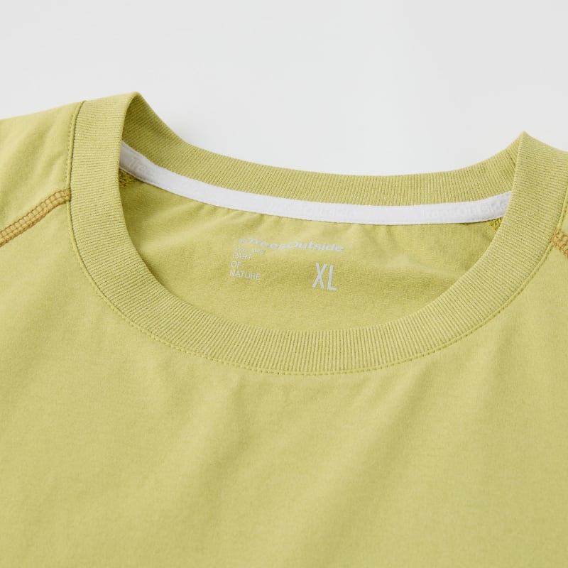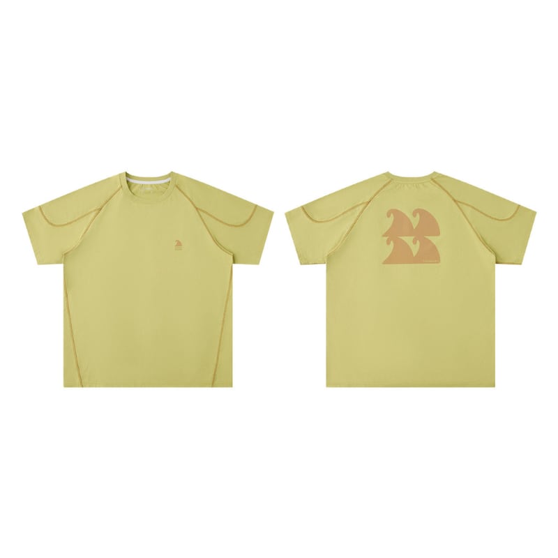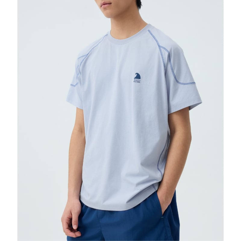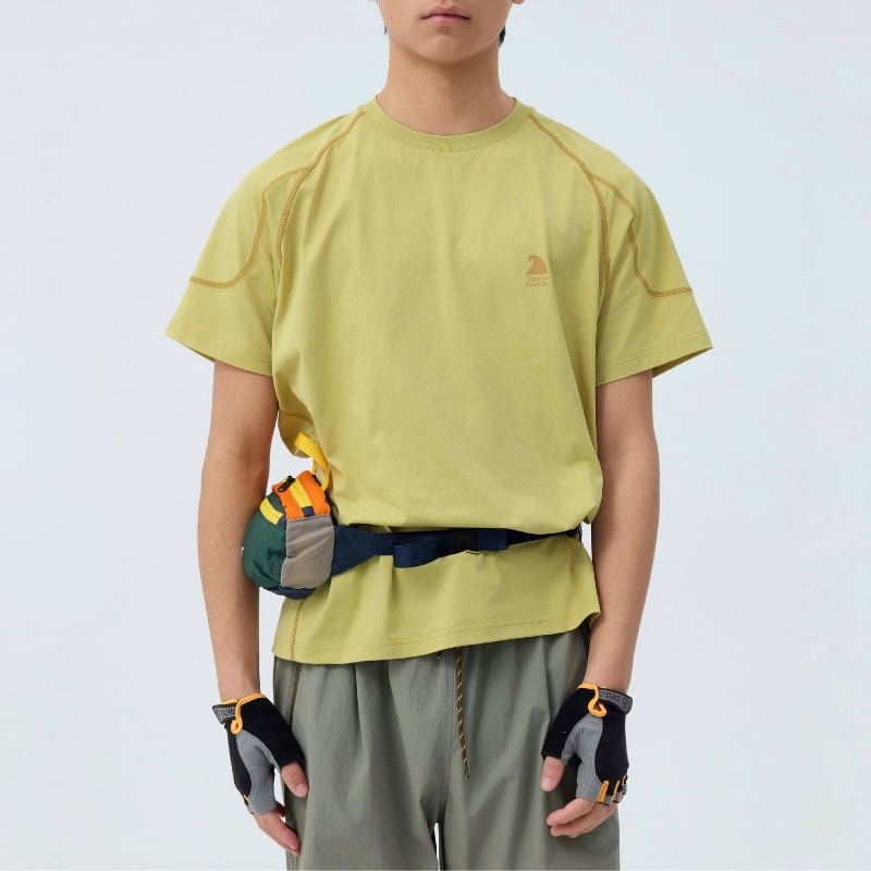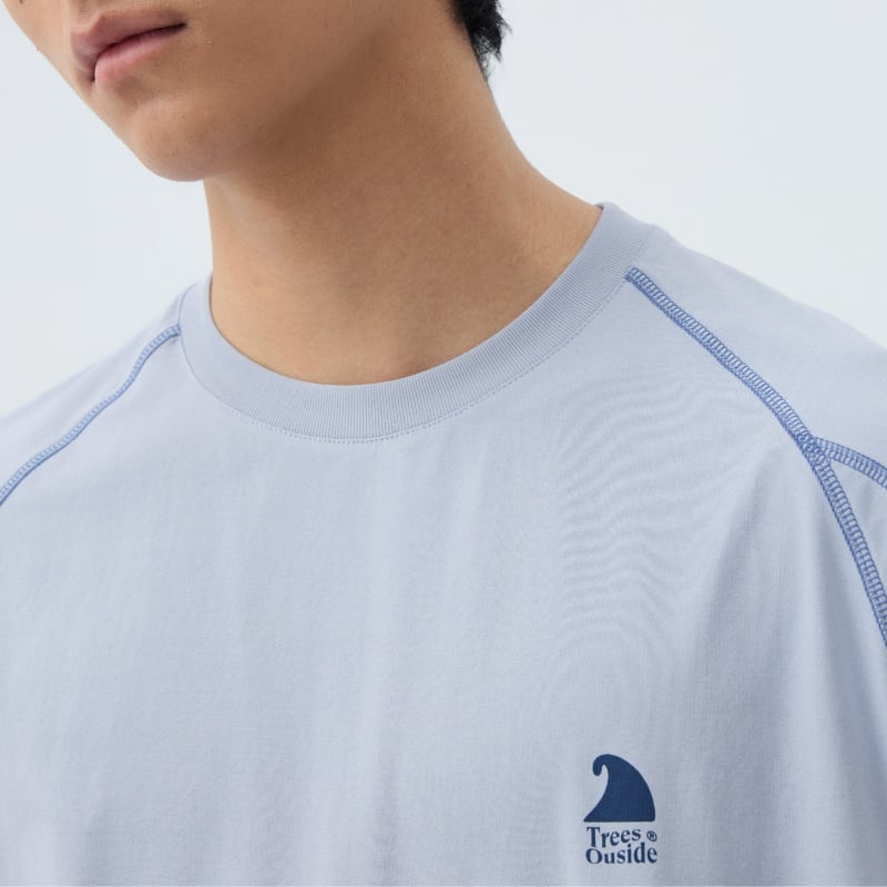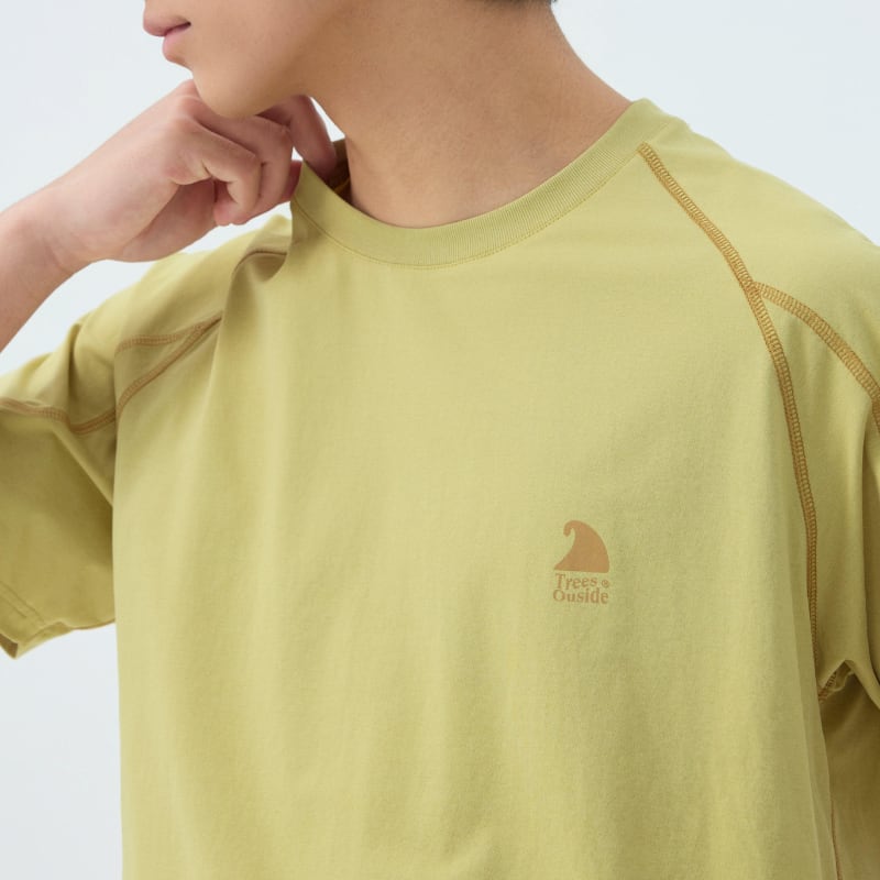 ラグランスリーブと立体的な切替ステッチが特徴の半袖Tシャツ。