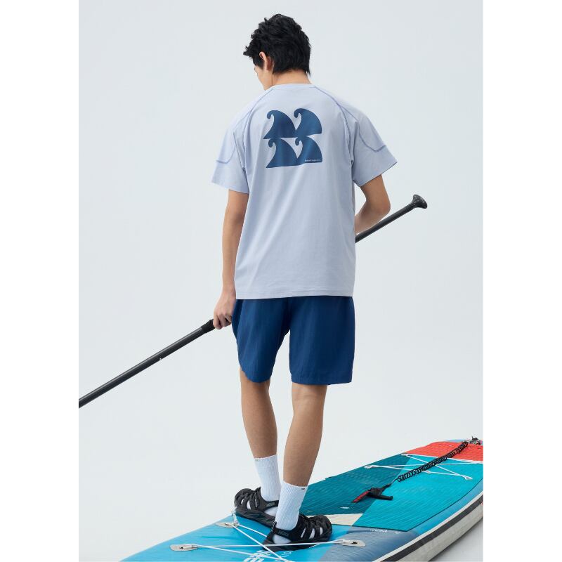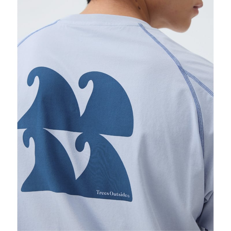 胸元のワンポイントロゴと背面の大胆なグラフィックプリントがアクセントになり、アウトドアらしい存在感のあるデザイン。
