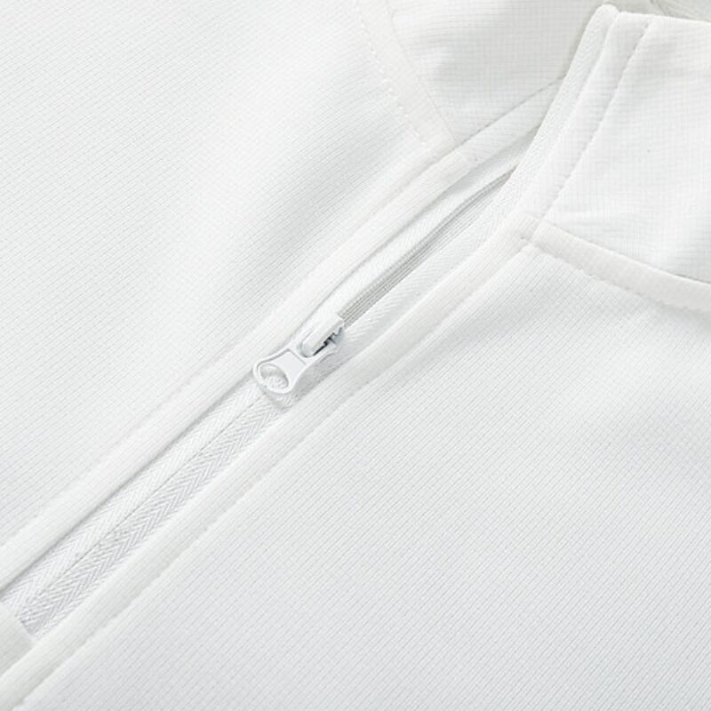 すっきりとしたシルエットで、スポーツやアウトドアスタイルにも合わせやすい一枚です。