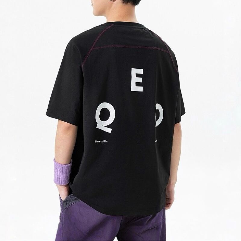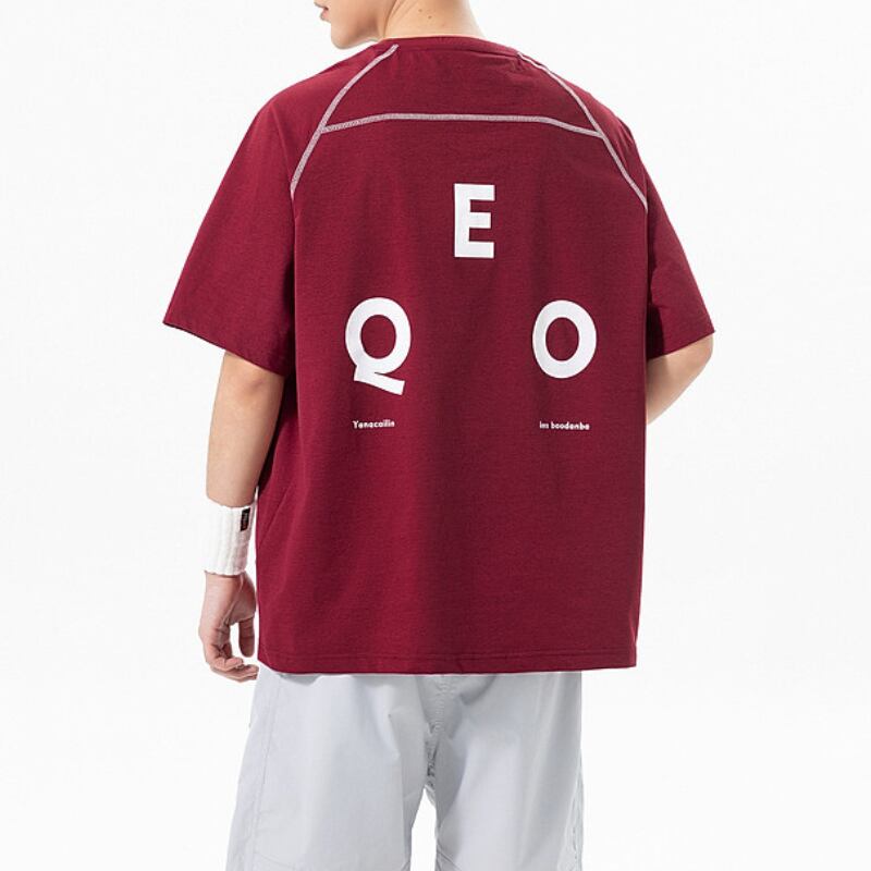 前後で異なるロゴ配置がコーデにさりげないアクセントを加える一枚です。
