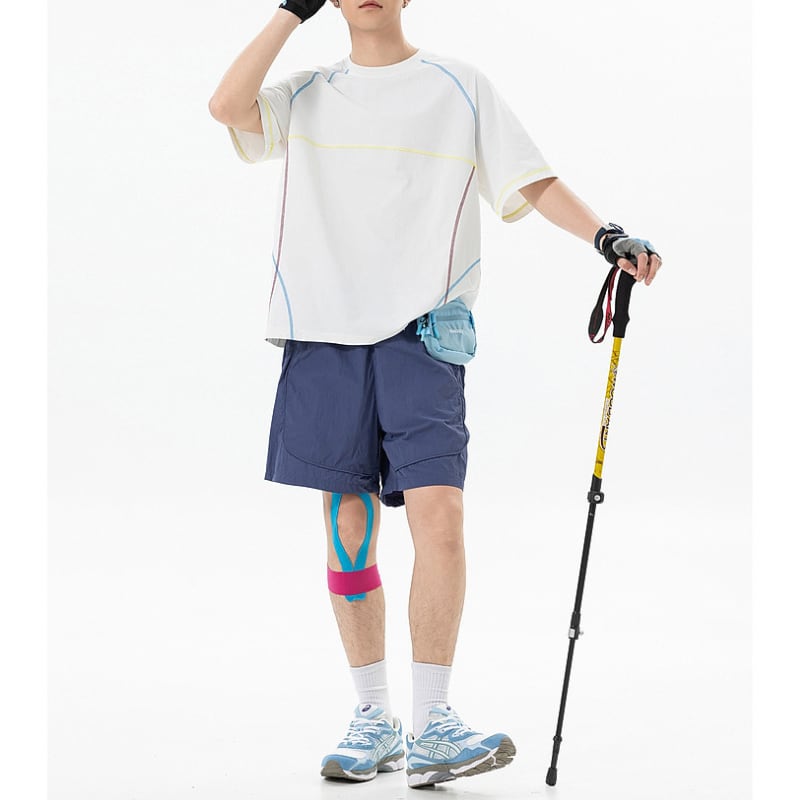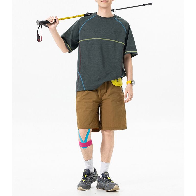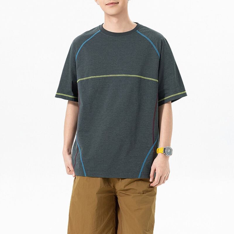 配色ステッチを効かせたアウトドアテイストのTシャツ。