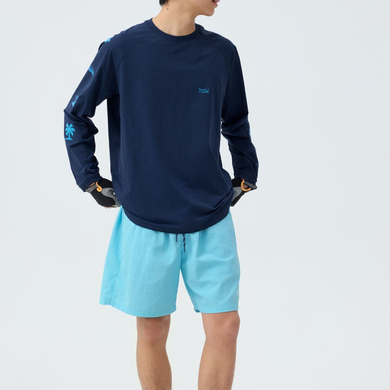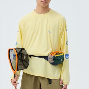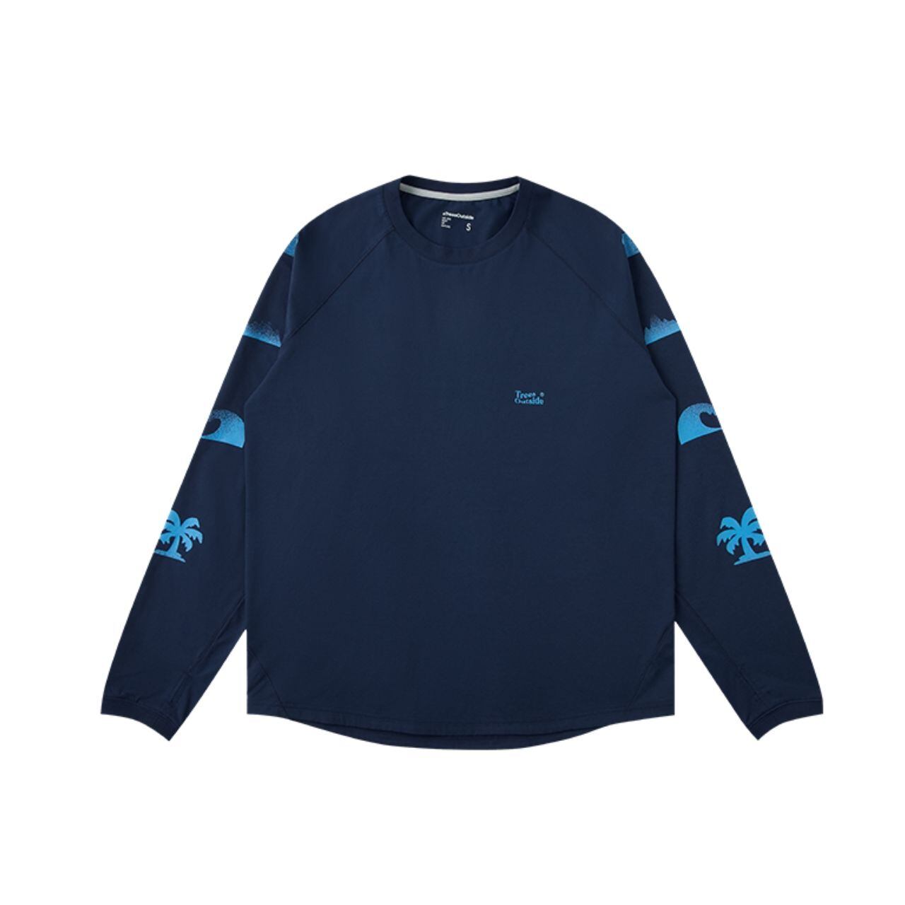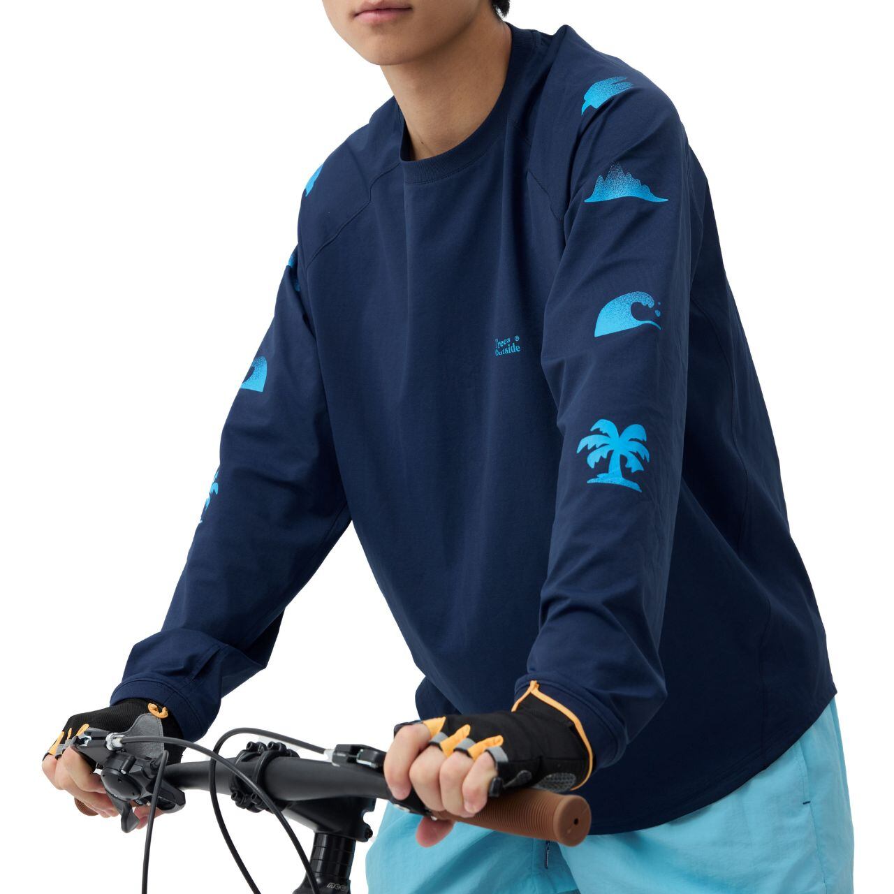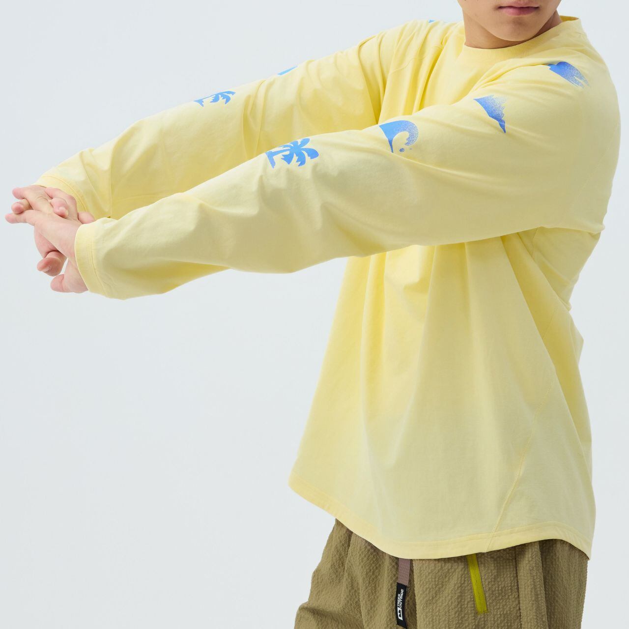 アクティブシーンに最適な長袖Tシャツ。吸湿速乾性に優れているため、汗をかいても快適な着心地が持続します。レギュラーカラーで、袖のプリントがさりげないアクセント。普段使いはもちろん、アウトドアやスポーツなど、様々なシーンで活躍します。