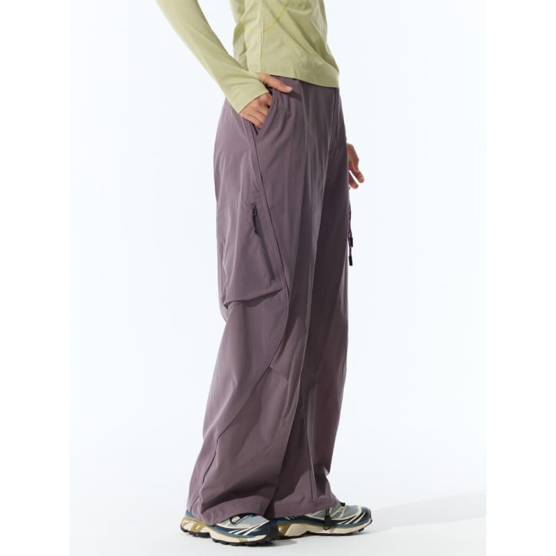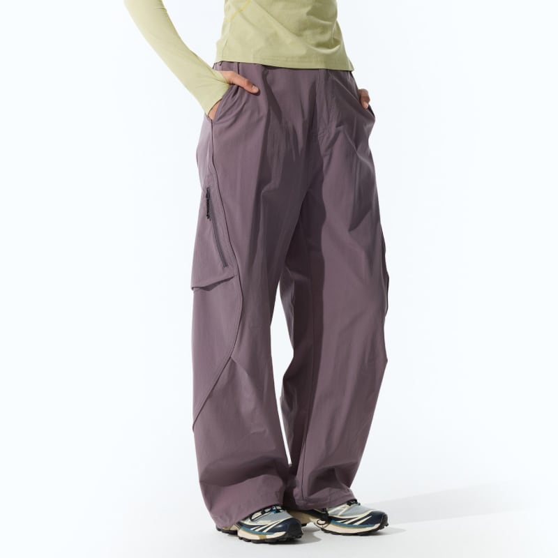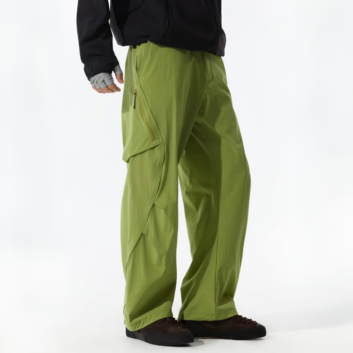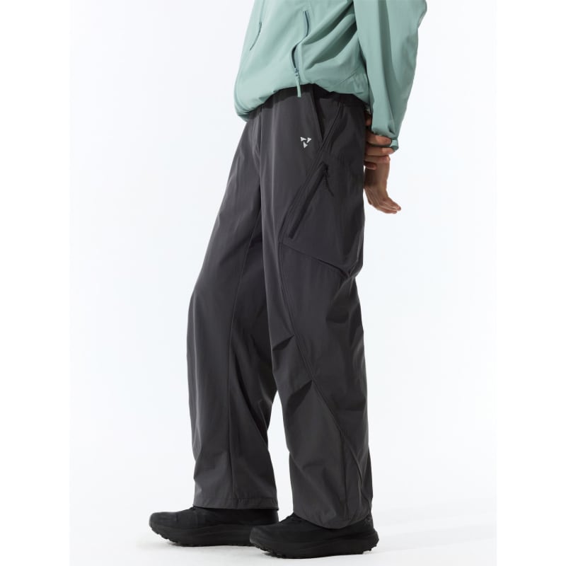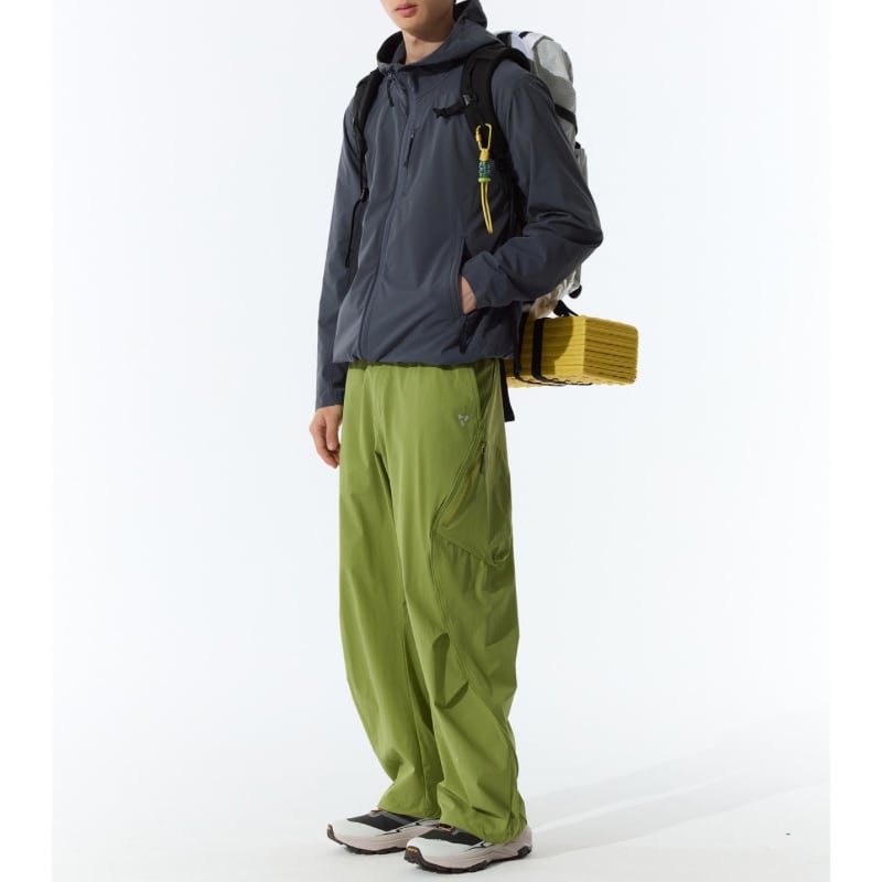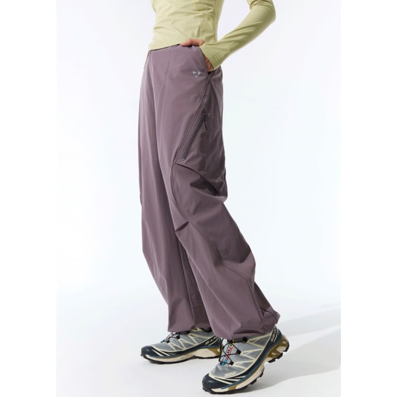 斜めジップポケットと立体カーゴポケットが特徴のパンツ。