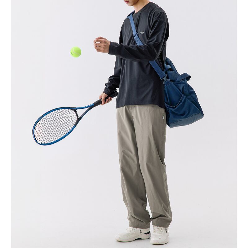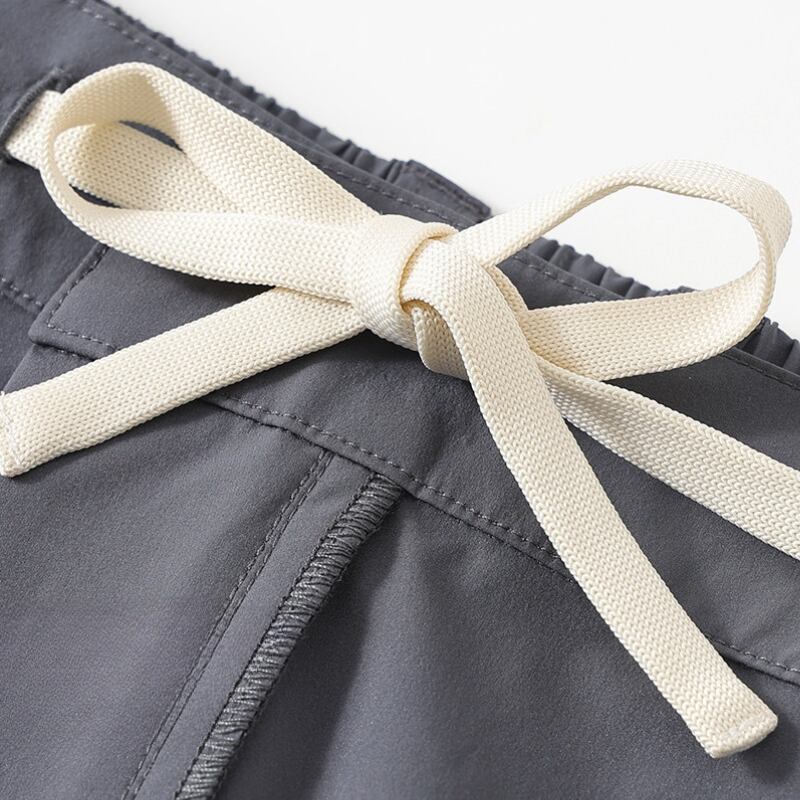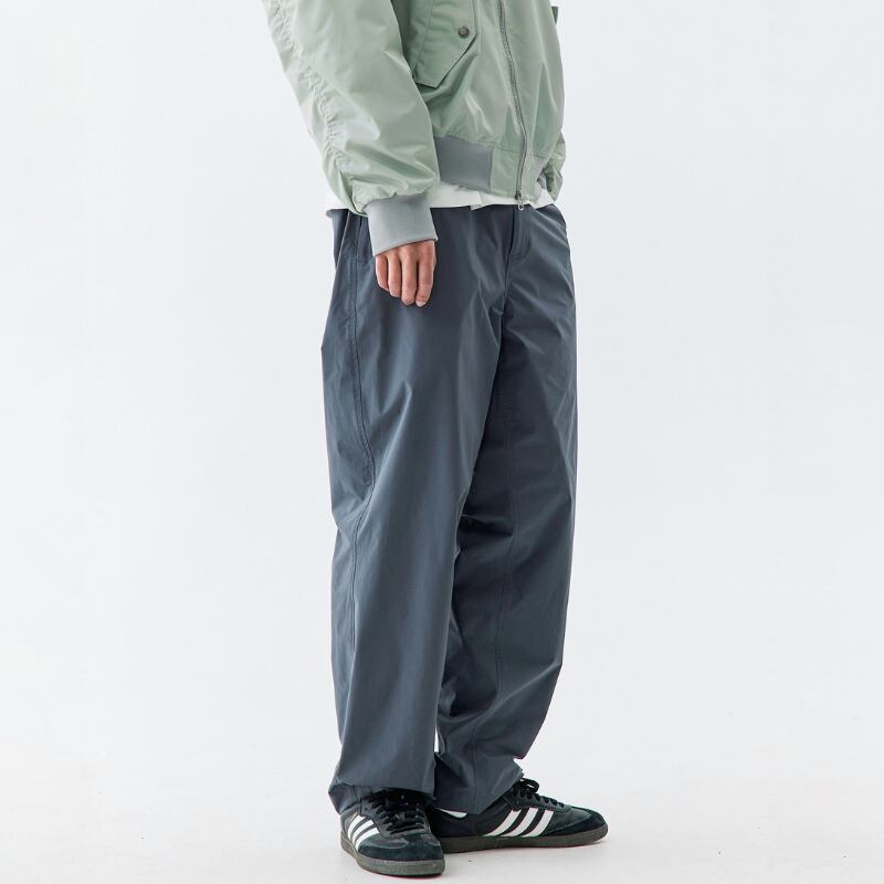 ウエストのドローストリングとシンプルなラインでバランス良くまとまります。