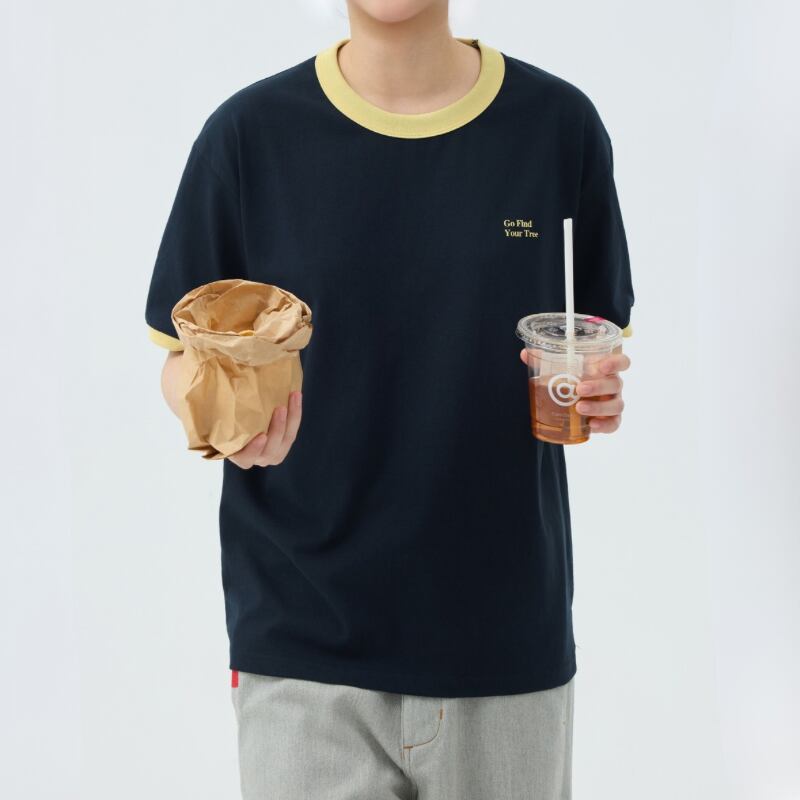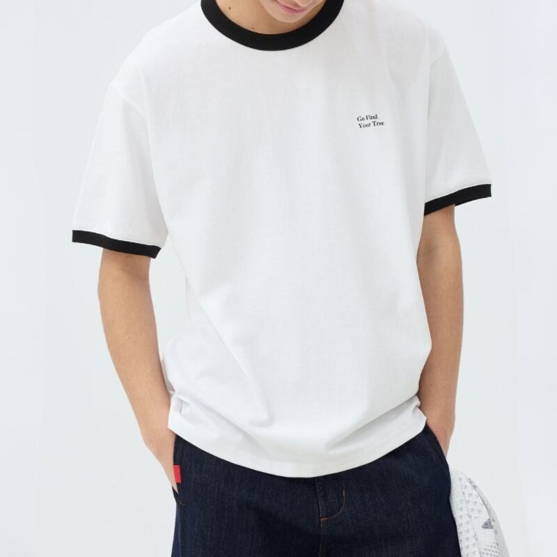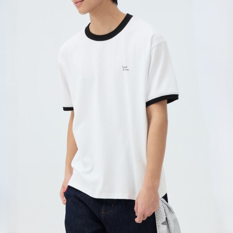 ネックと袖口のバイカラーデザインが特徴のリンガーTシャツ。