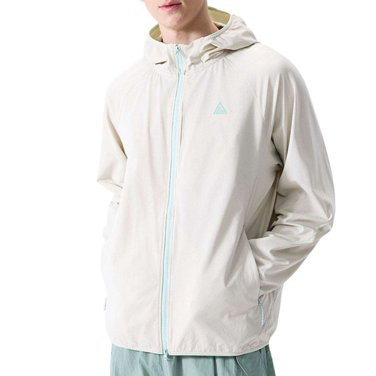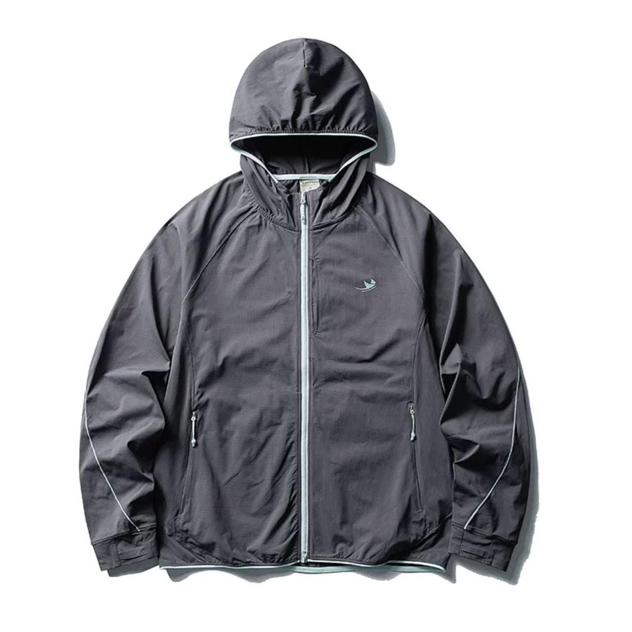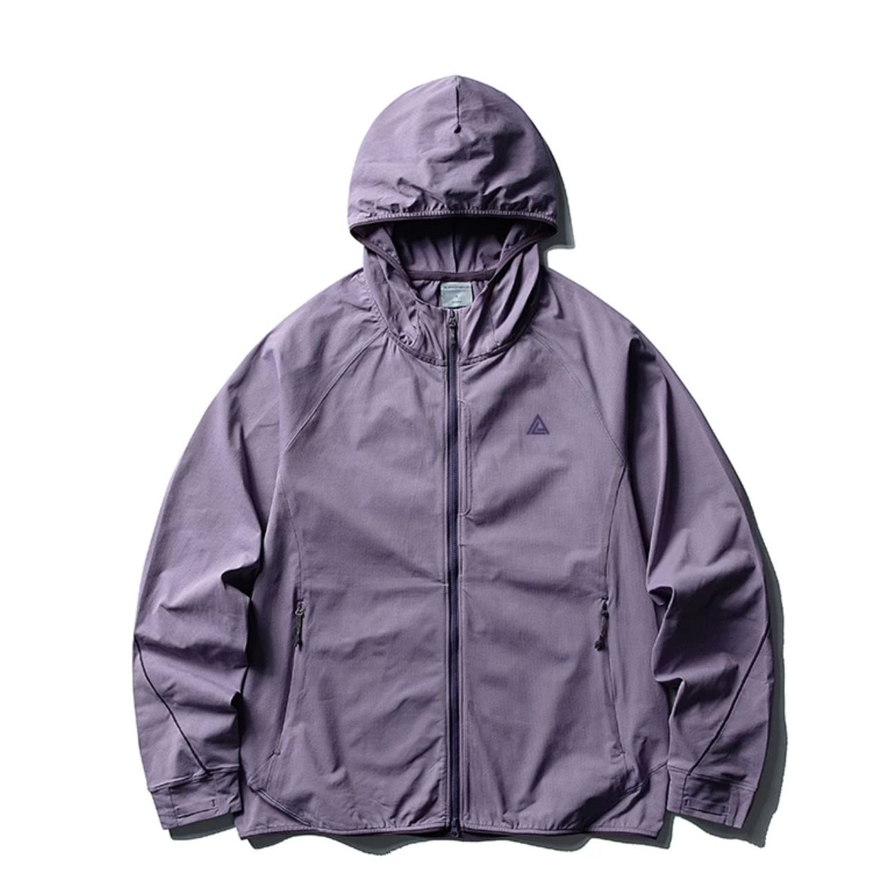 ジップアップで着脱が簡単なフード付きライトジャケット。ヒップ丈なので動きやすく、アウトドアシーンや旅行先での羽織りものとして最適です。