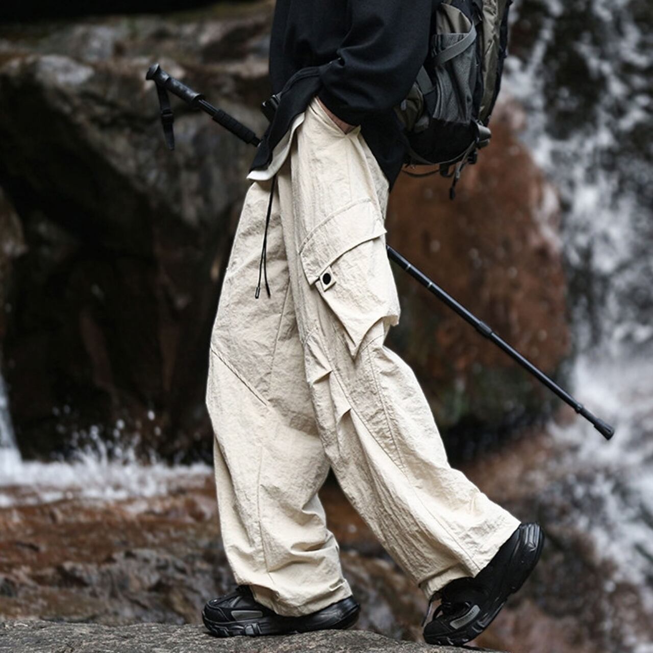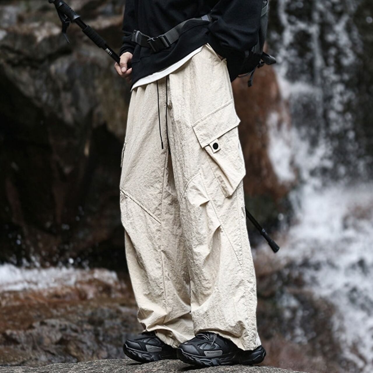 ドローストリングワイドカーゴパンツ R00163