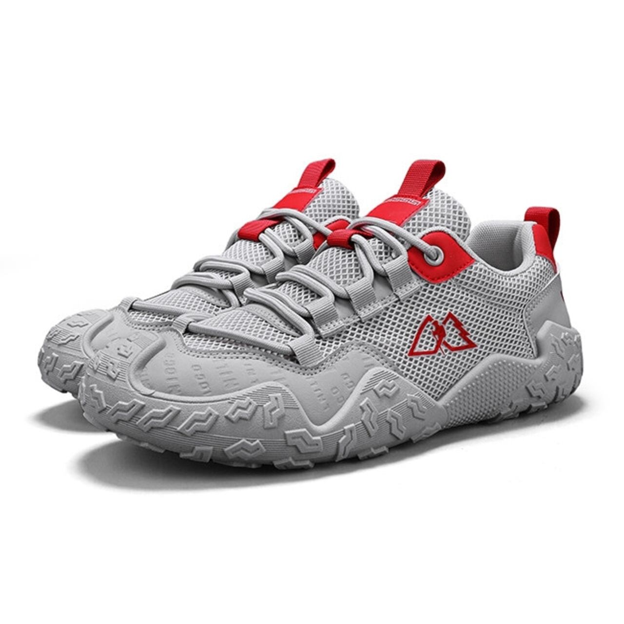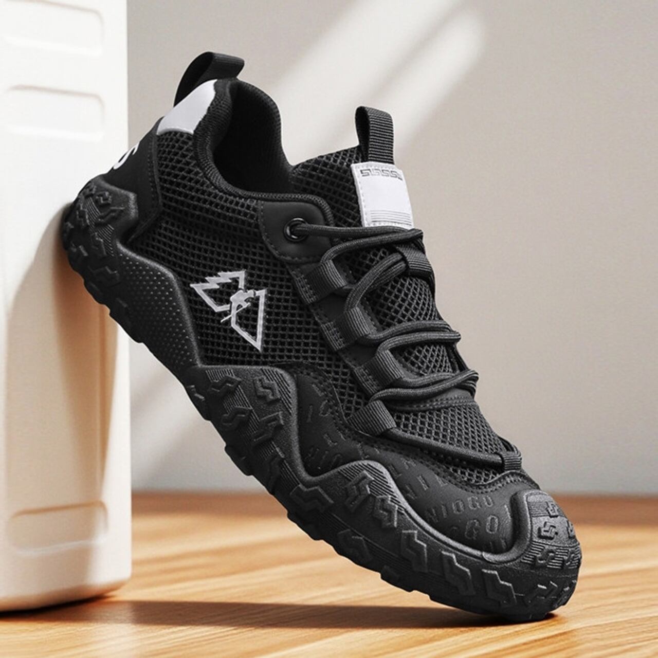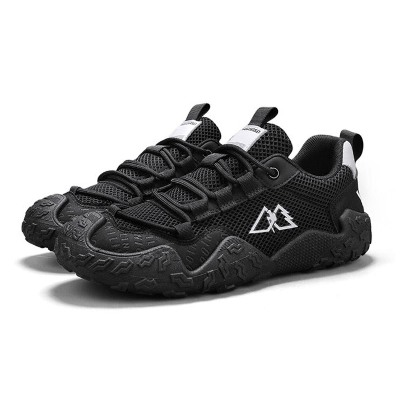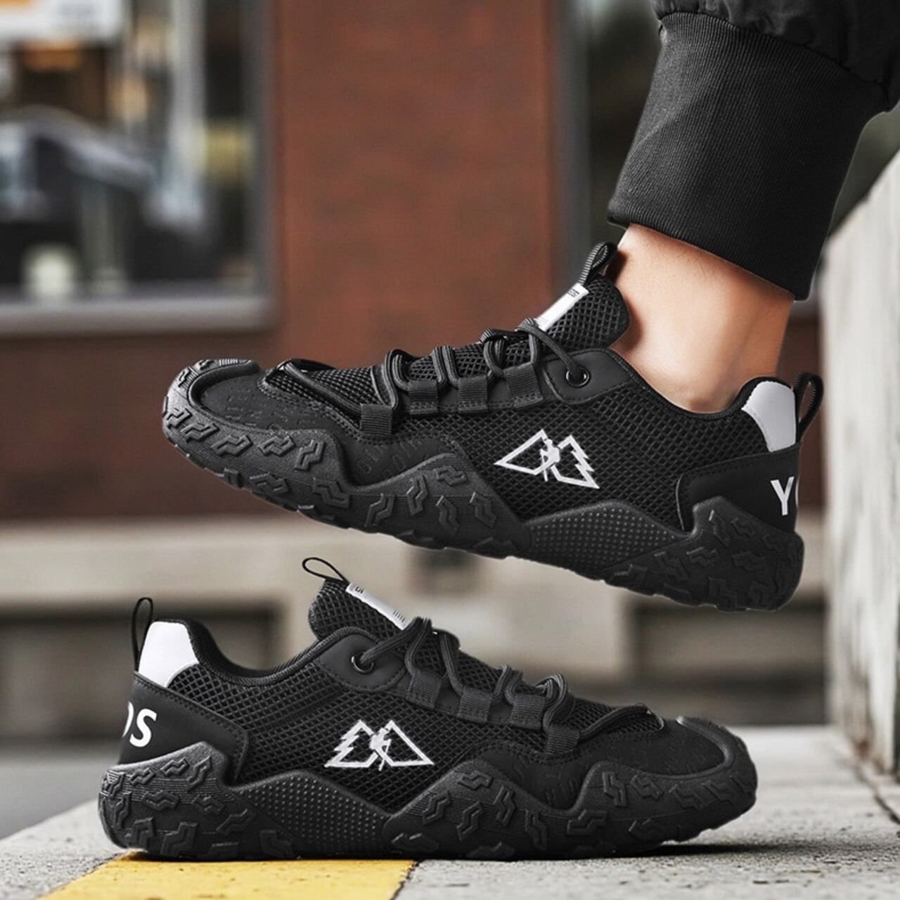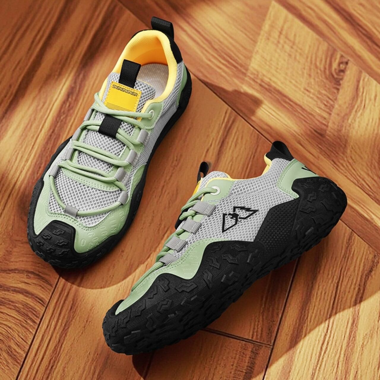 大胆なカラーブロッキングとソールデザインが特徴のスニーカー。
