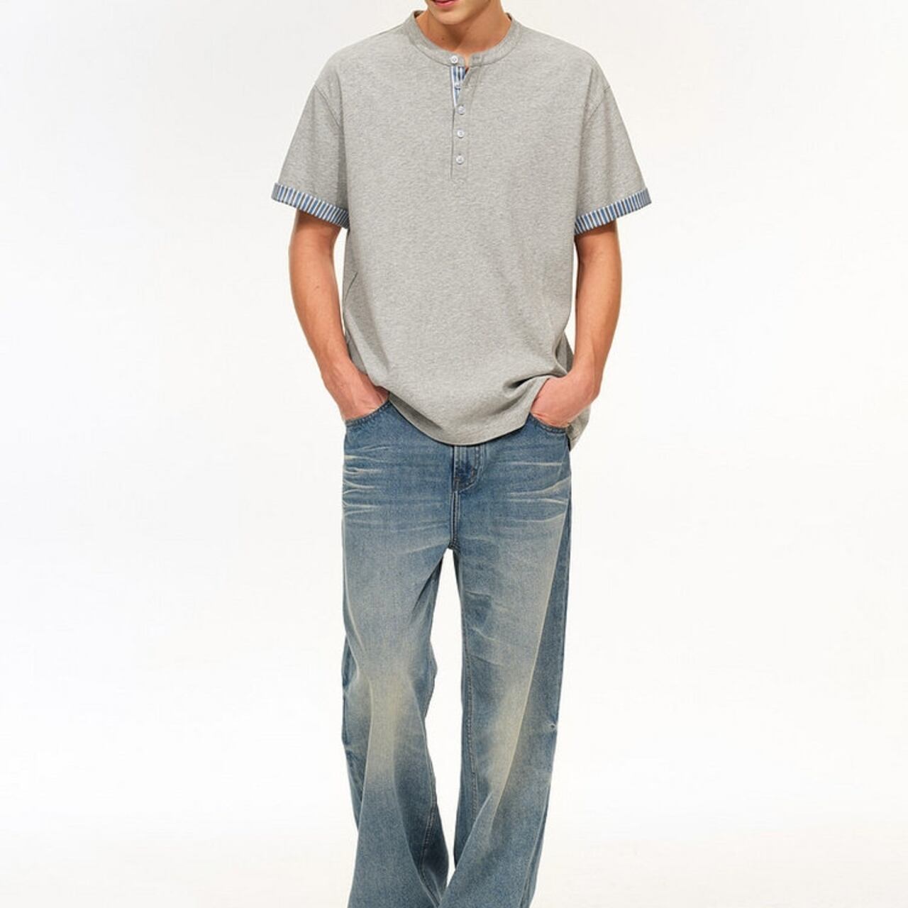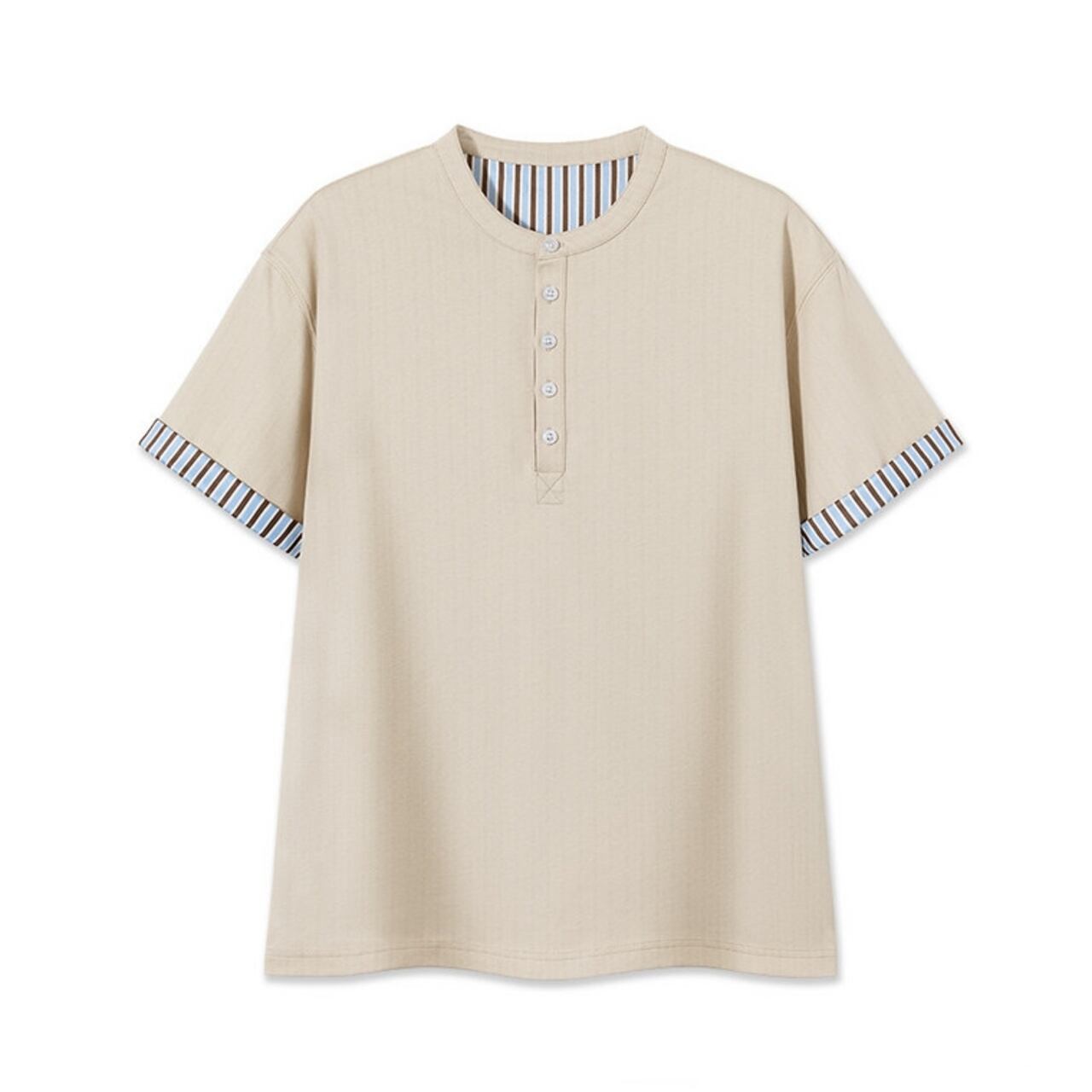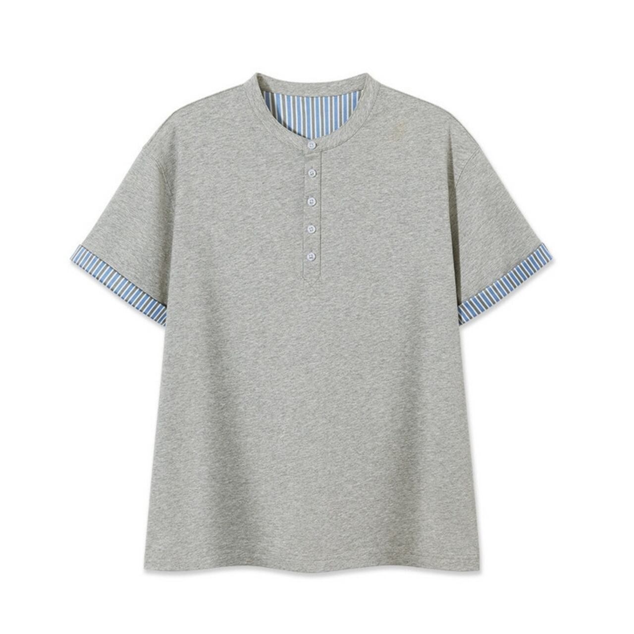 ヘンリーネック袖ストライプシャツ R00152