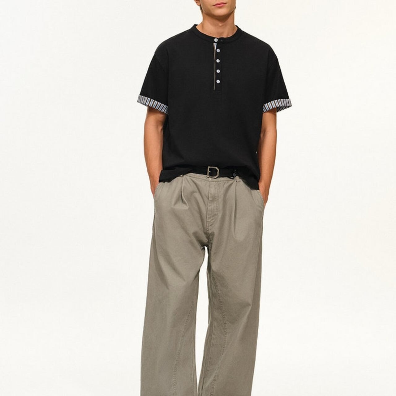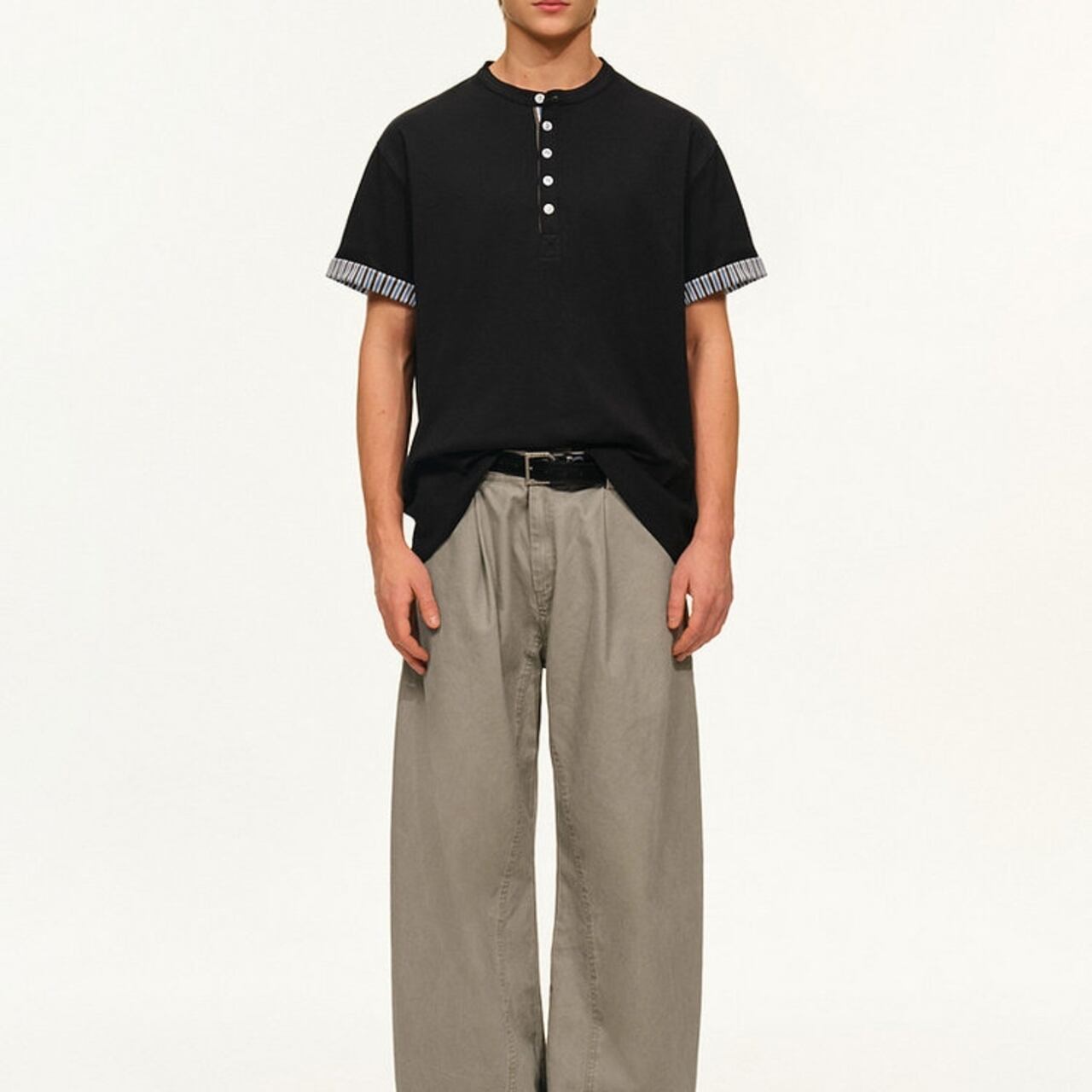 リラックスした着心地が魅力のヘンリーネック半袖シャツ。