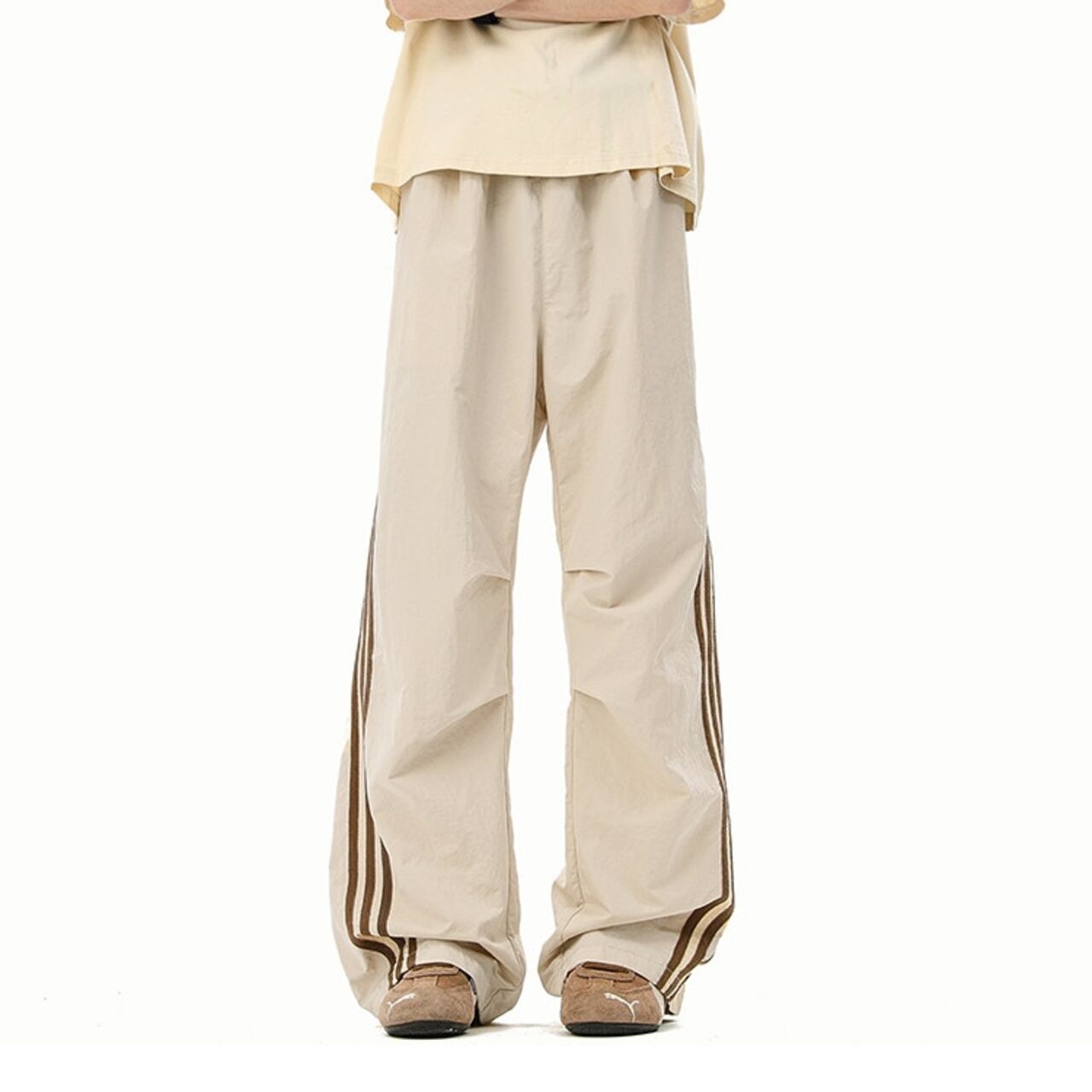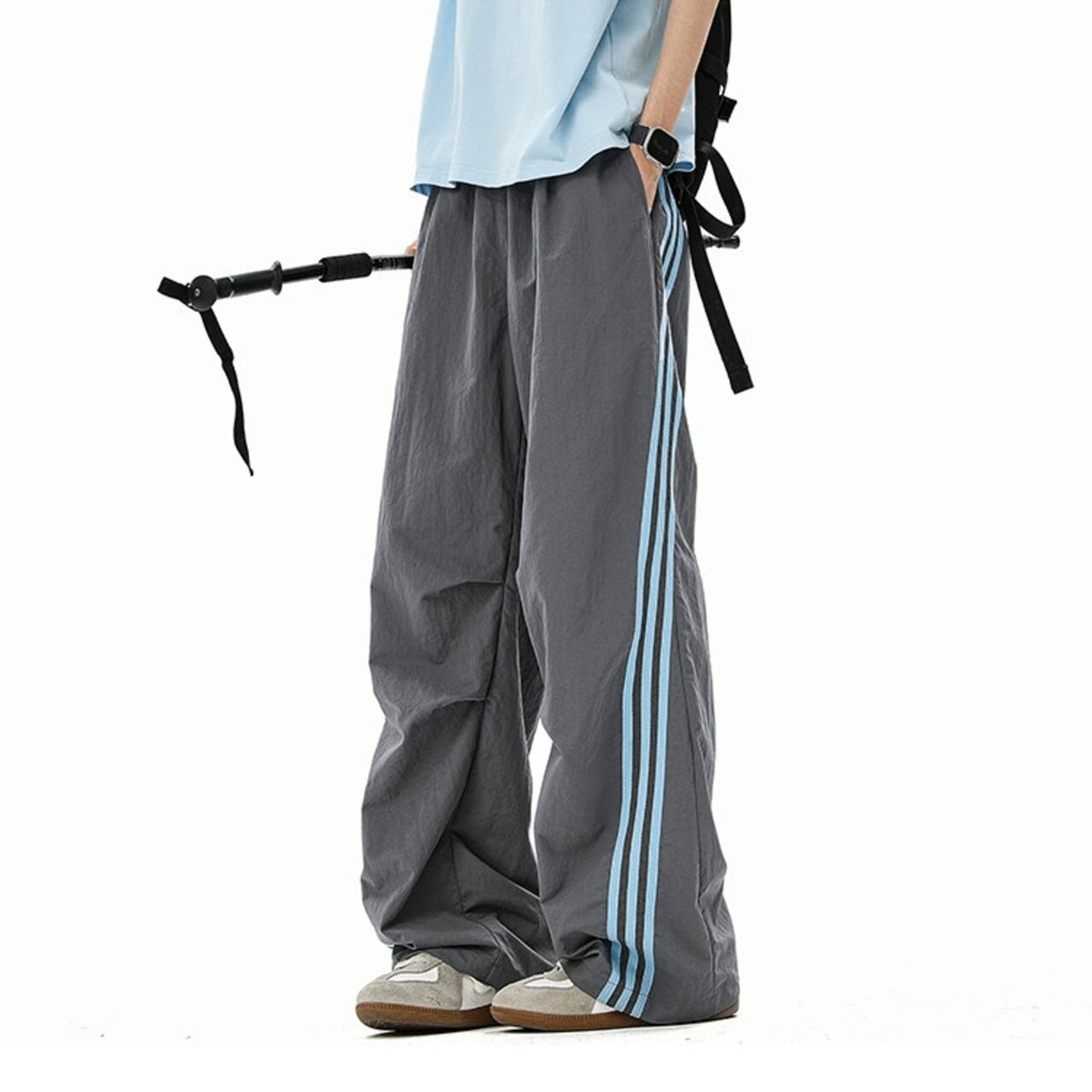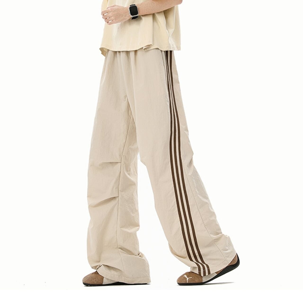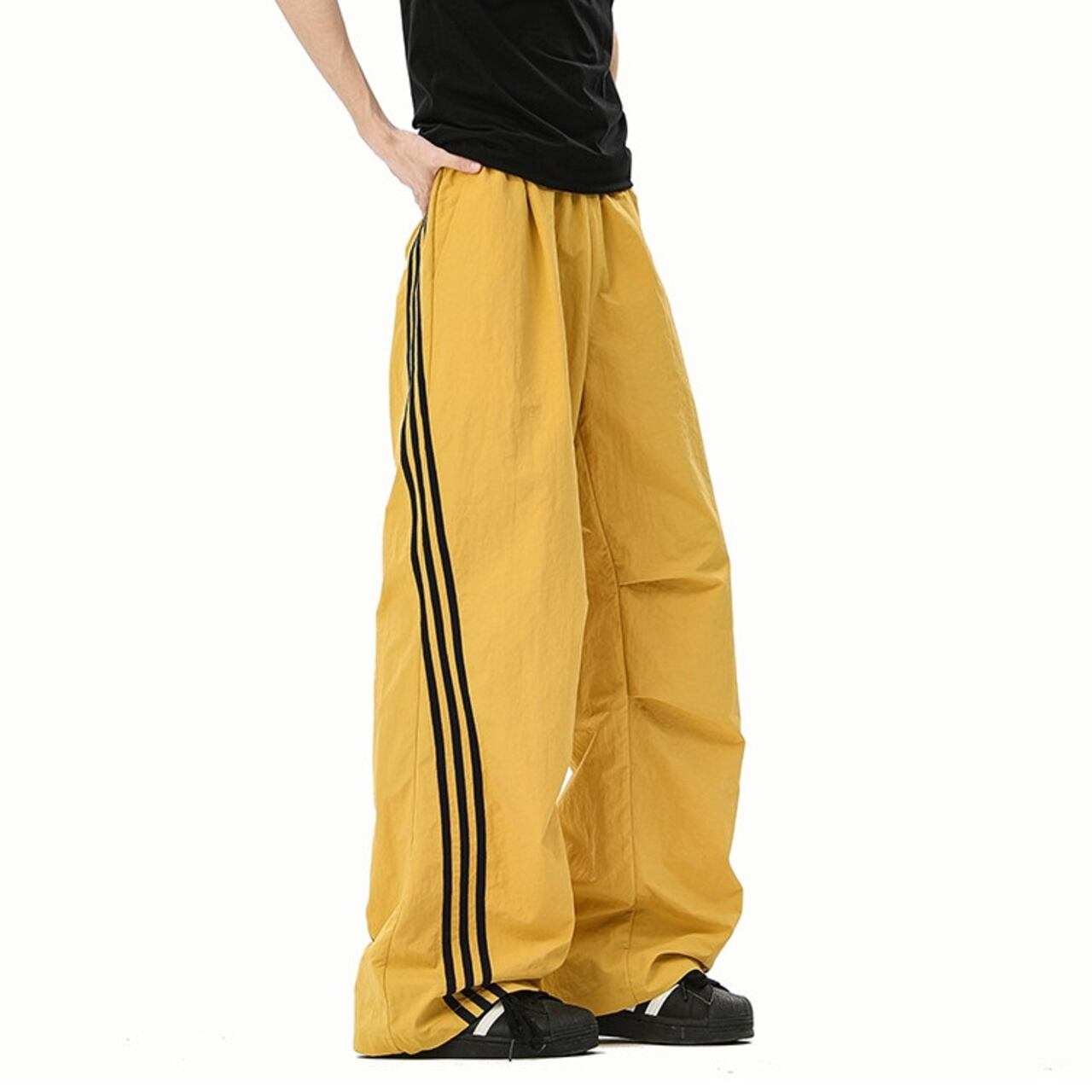 スポーティな着こなしに最適な、サイドライン入りのワイドカーゴパンツ。