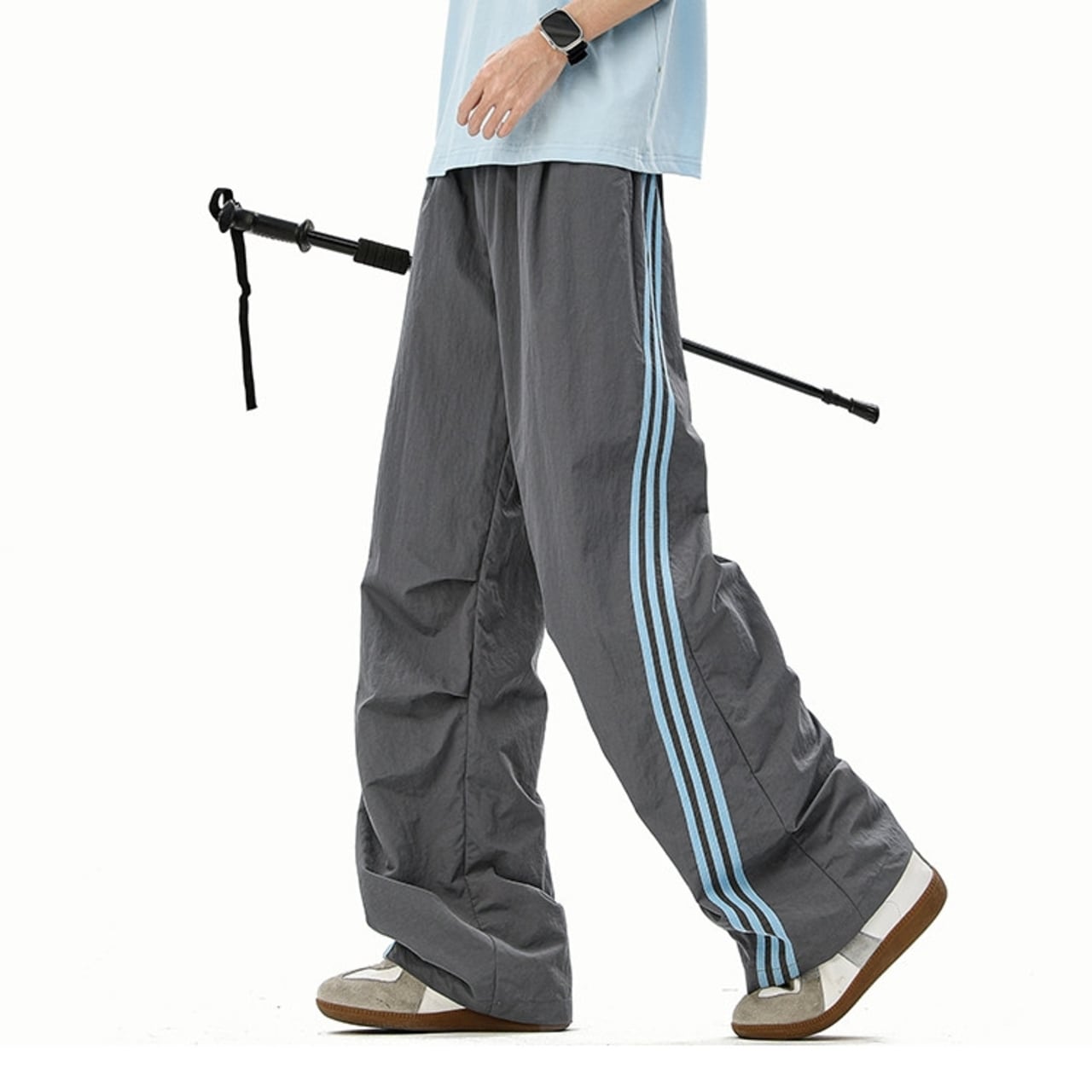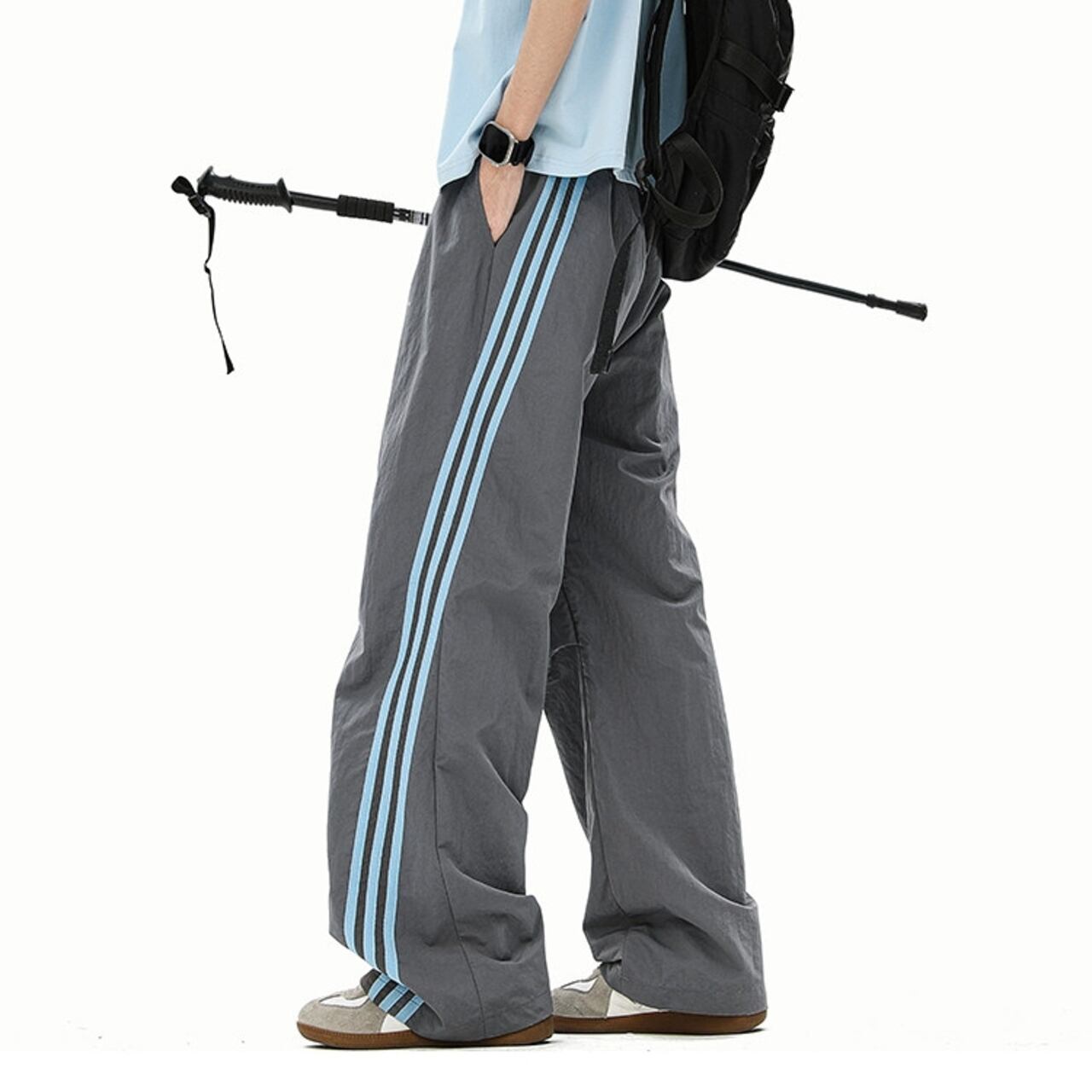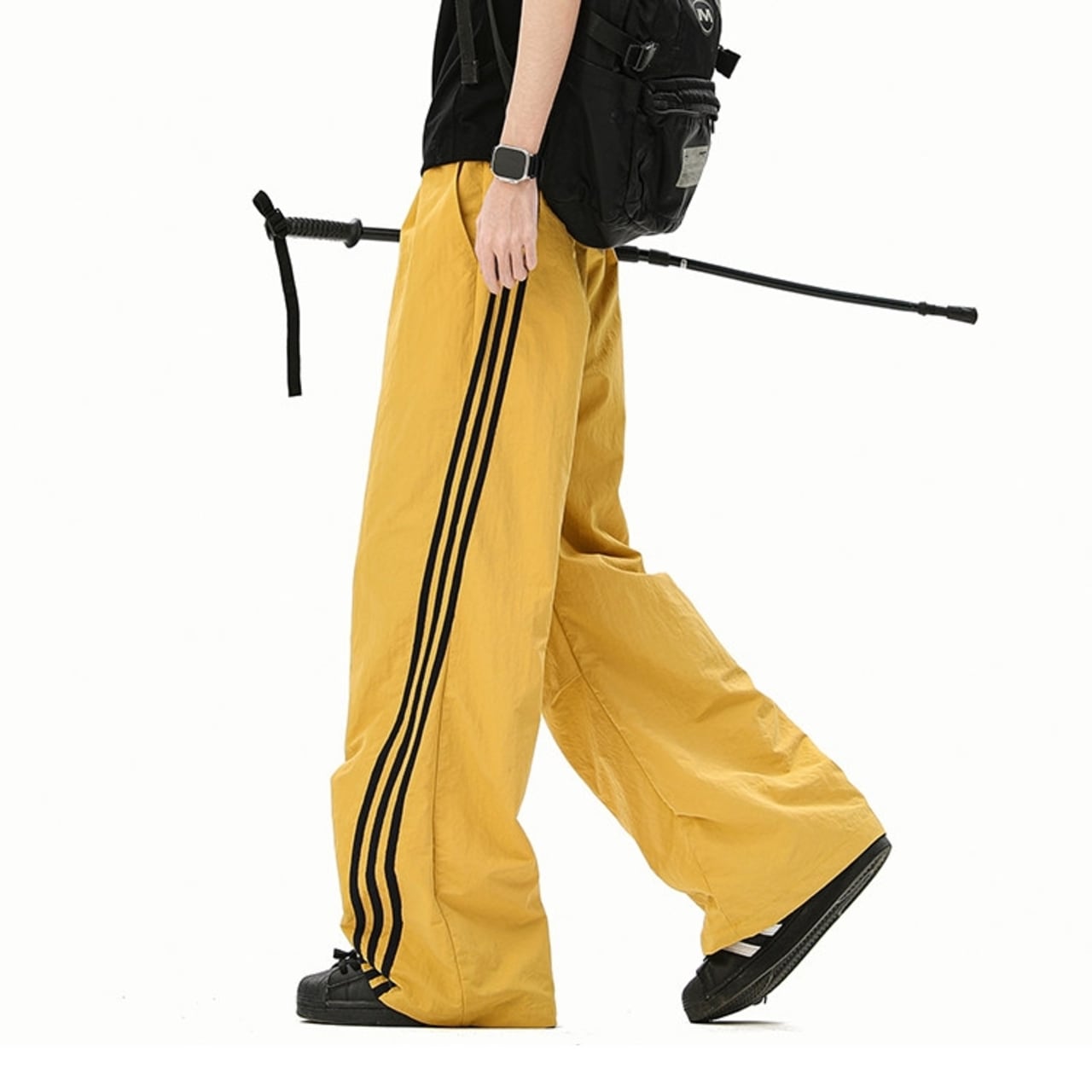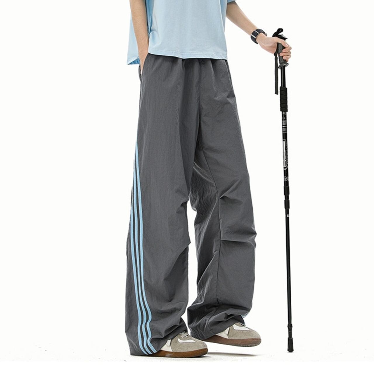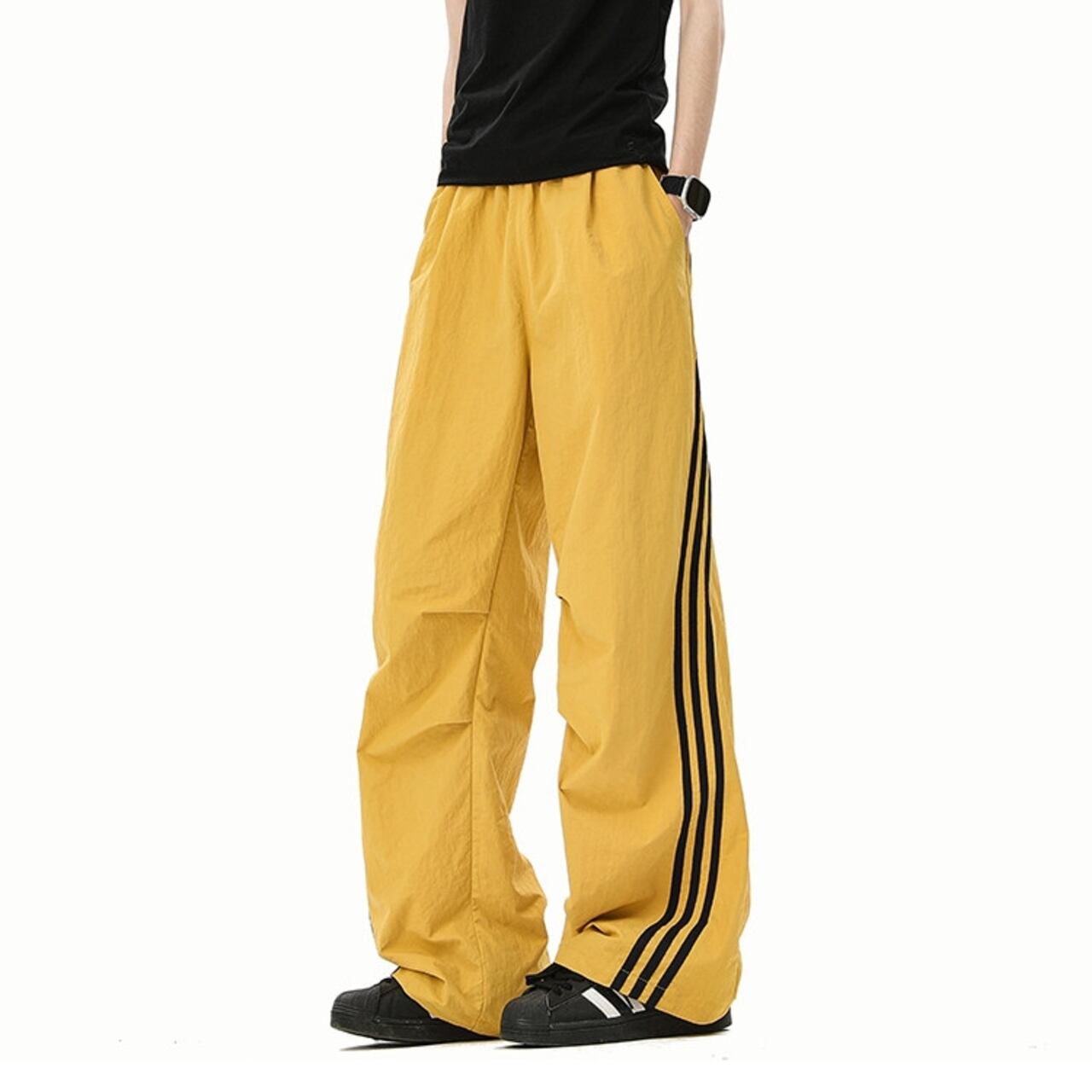 スポーティな着こなしに最適な、サイドライン入りのワイドカーゴパンツ。