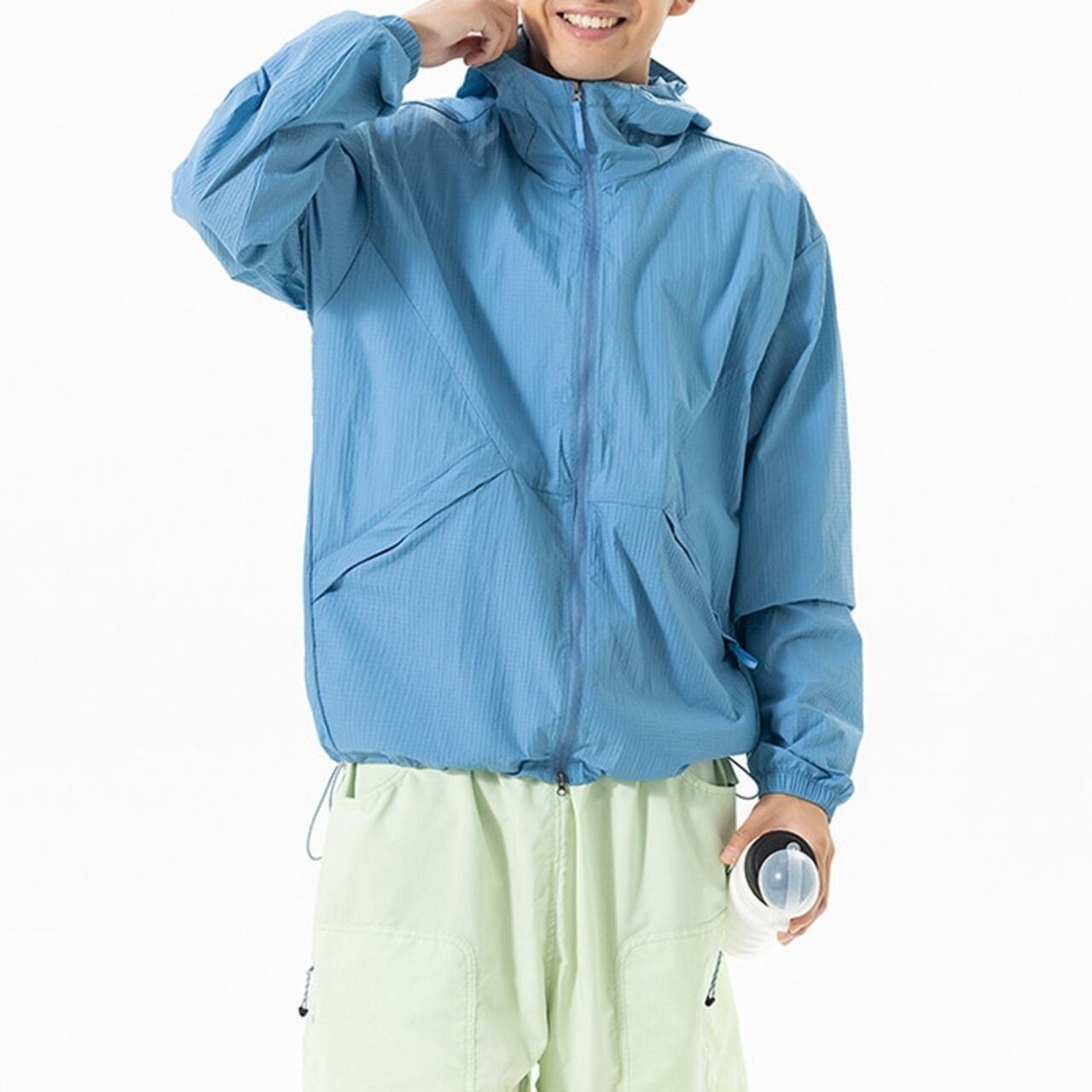 フード付き腰丈長袖ジャケットで、変わりやすい天候にも対応。