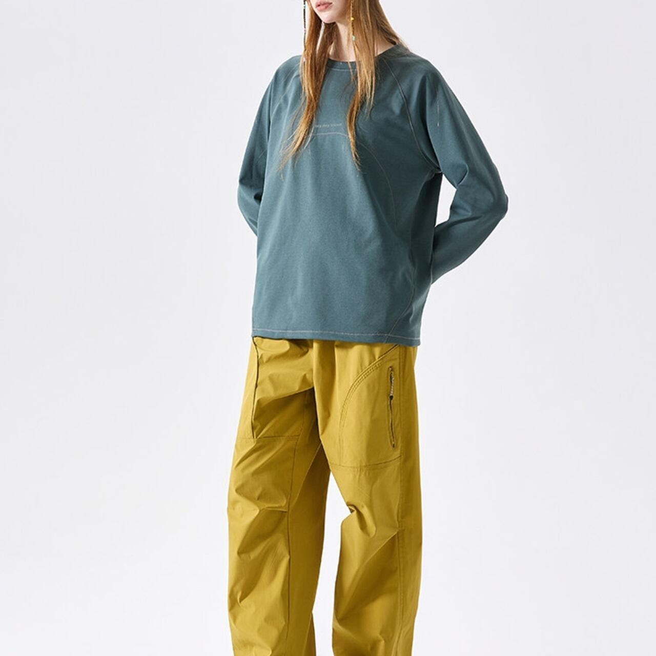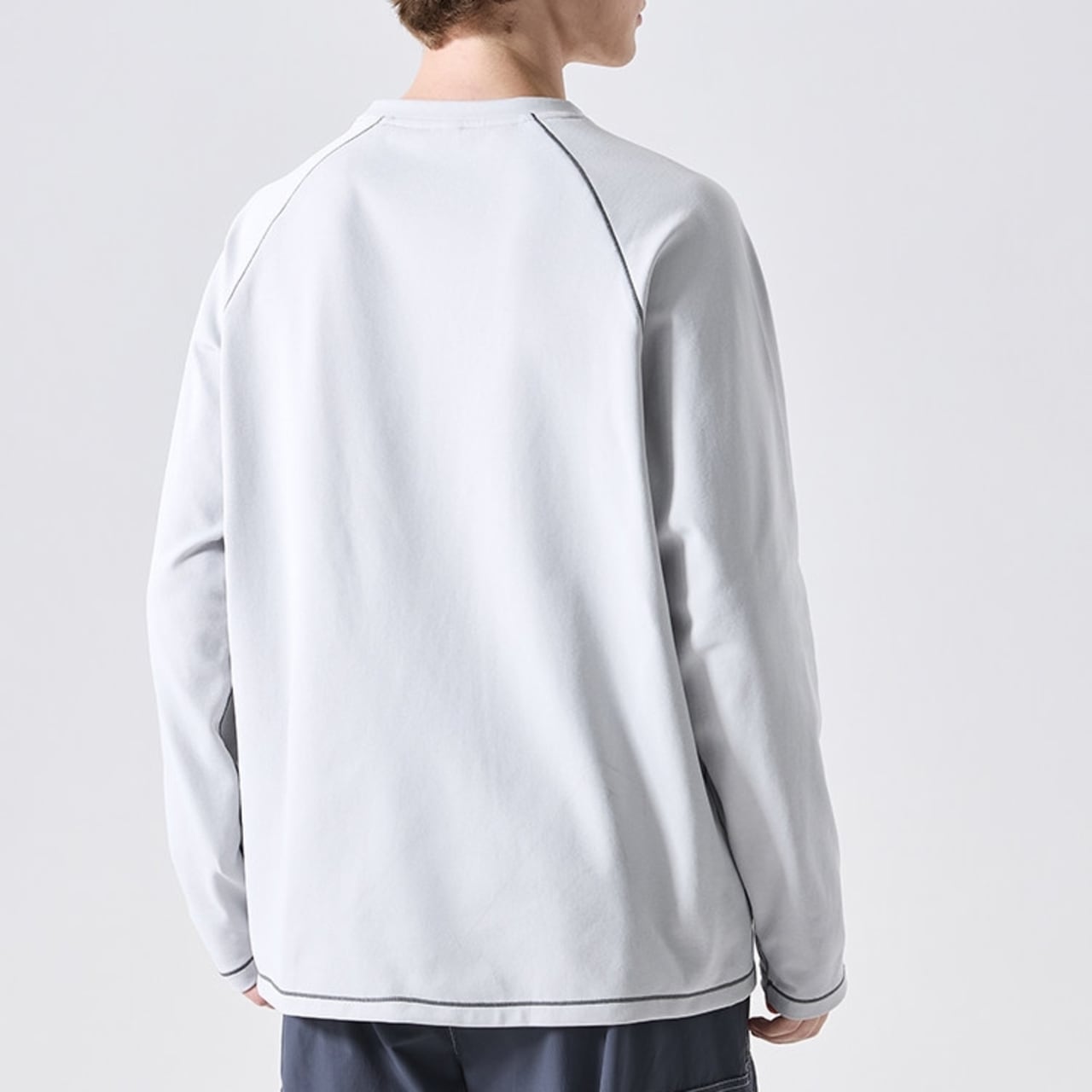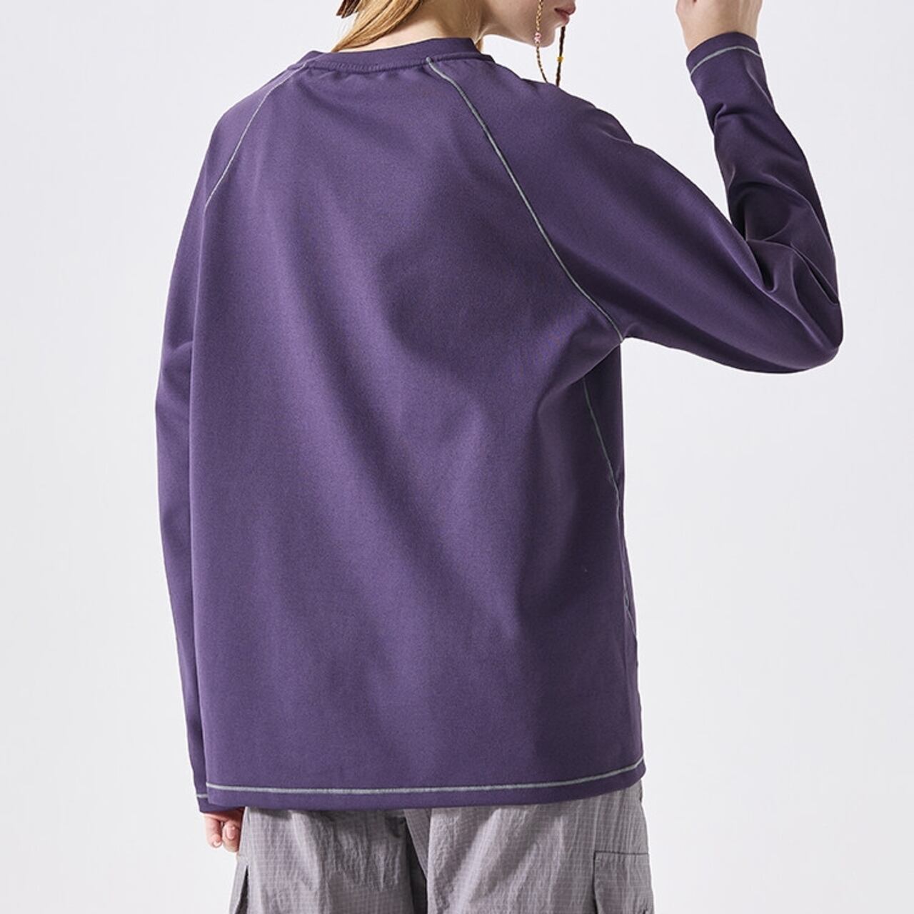 シンプルなデザインの中に、配色ステッチが光る長袖Tシャツ。