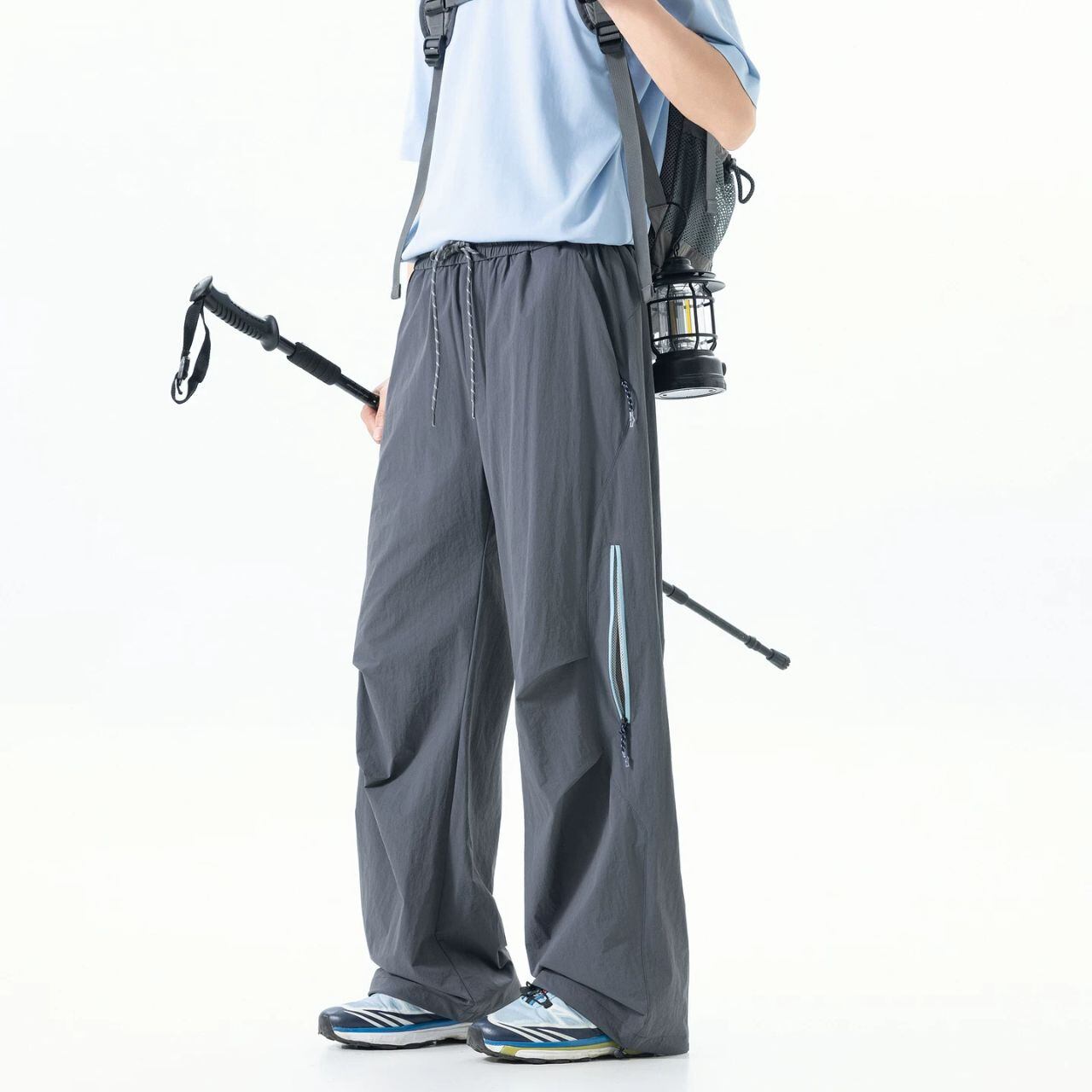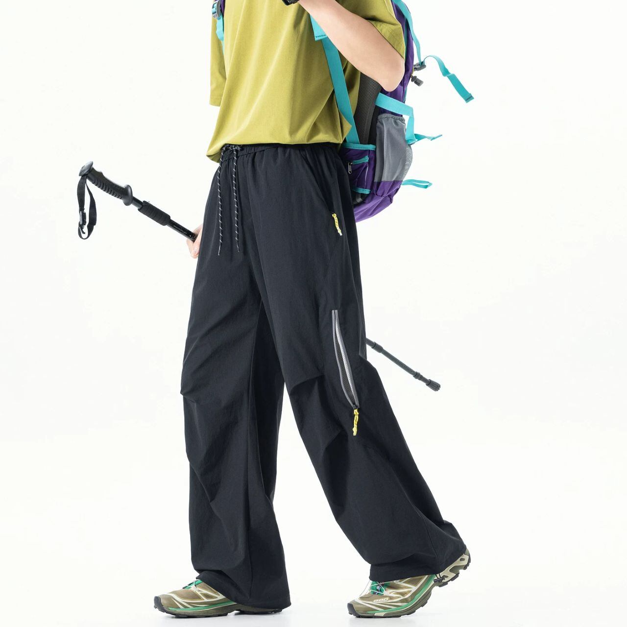 動きやすさを追求したワイドシルエットの丈長めパンツ。ウエストはドローストリング仕様で、快適なフィット感を実現します。サイドのジップポケットは通気性の良いメッシュ素材を使用しており、機能性も抜群です。