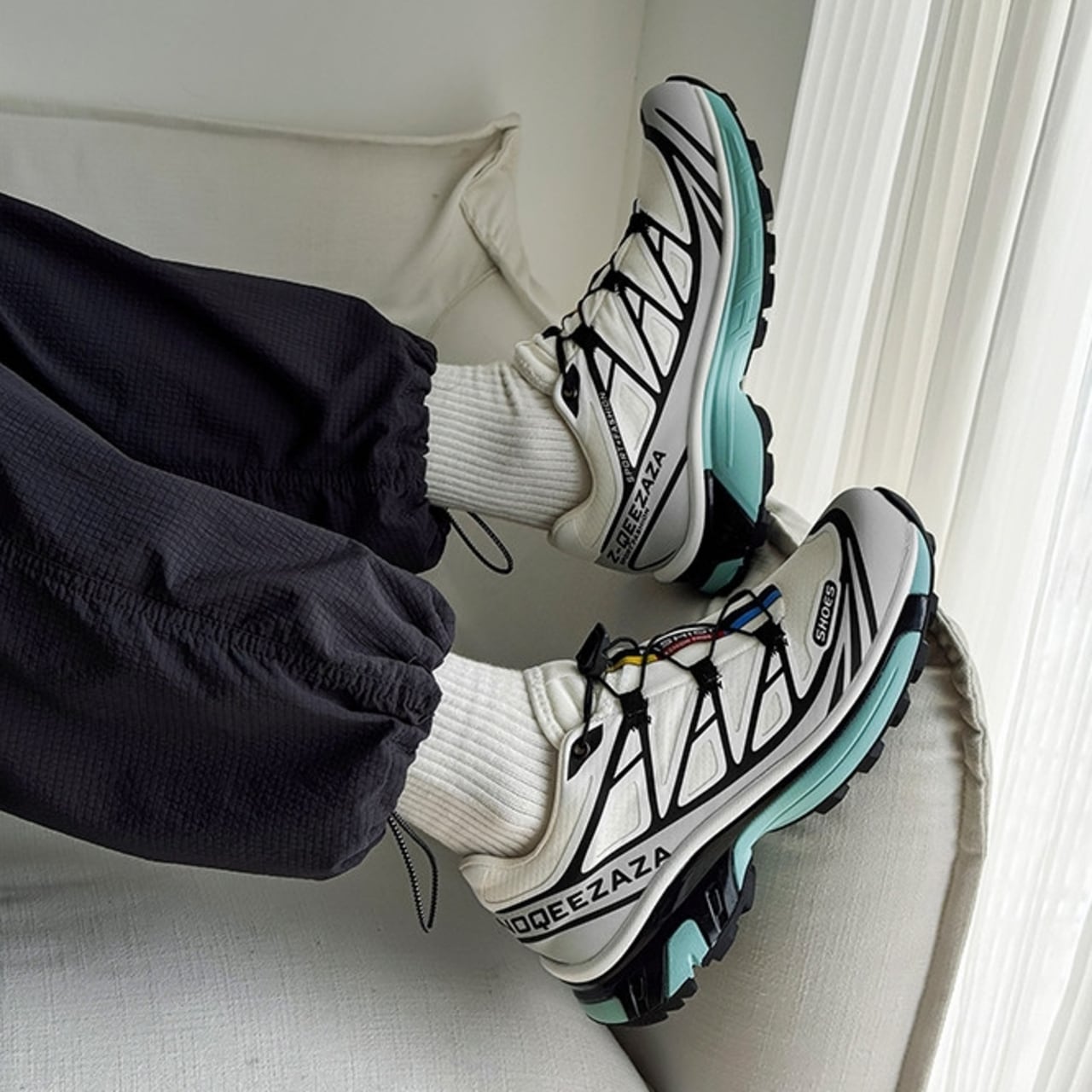レースアップでフィット感を調整できるローカットスポーツスニーカーです。